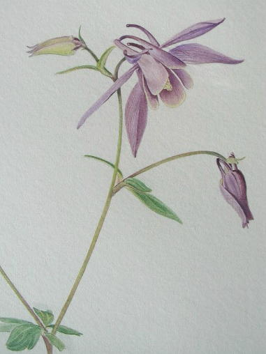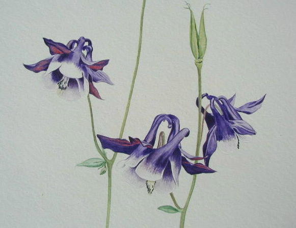 The delicacy and coloring of the water-colored Columbines are remarkable. Such talent displayed.