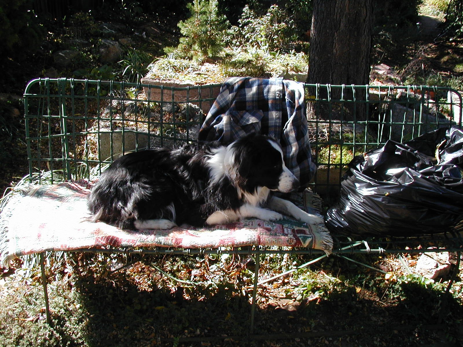 It was almost dejà vu all over again. The difference was that this was sand. The guy I live with spent all day moving sand, which he said was extremely boring, but not nearly as boring as it was being me, stuck inside the house, instead of herding the wheelbarrow around the garden. The guy I live with said it would hurt if one of my paws were run over by a wheelbarrow full of sand. I knew that wouldn’t happen, and I was sad. I even howled a little, which I learned from my buddy Slipper. In fact, my buddy Slipper really knew how to pour it on; when he was sick, and the guy I live with had to leave the house for what he insisted was “a very good reason”, my buddy Slipper would say, in his saddest voice, that it was okay if he got left but he was really sick and might not be here when the guy I live with came home, but it was okay to go ahead and leave him if he was willing to take that horrible chance.