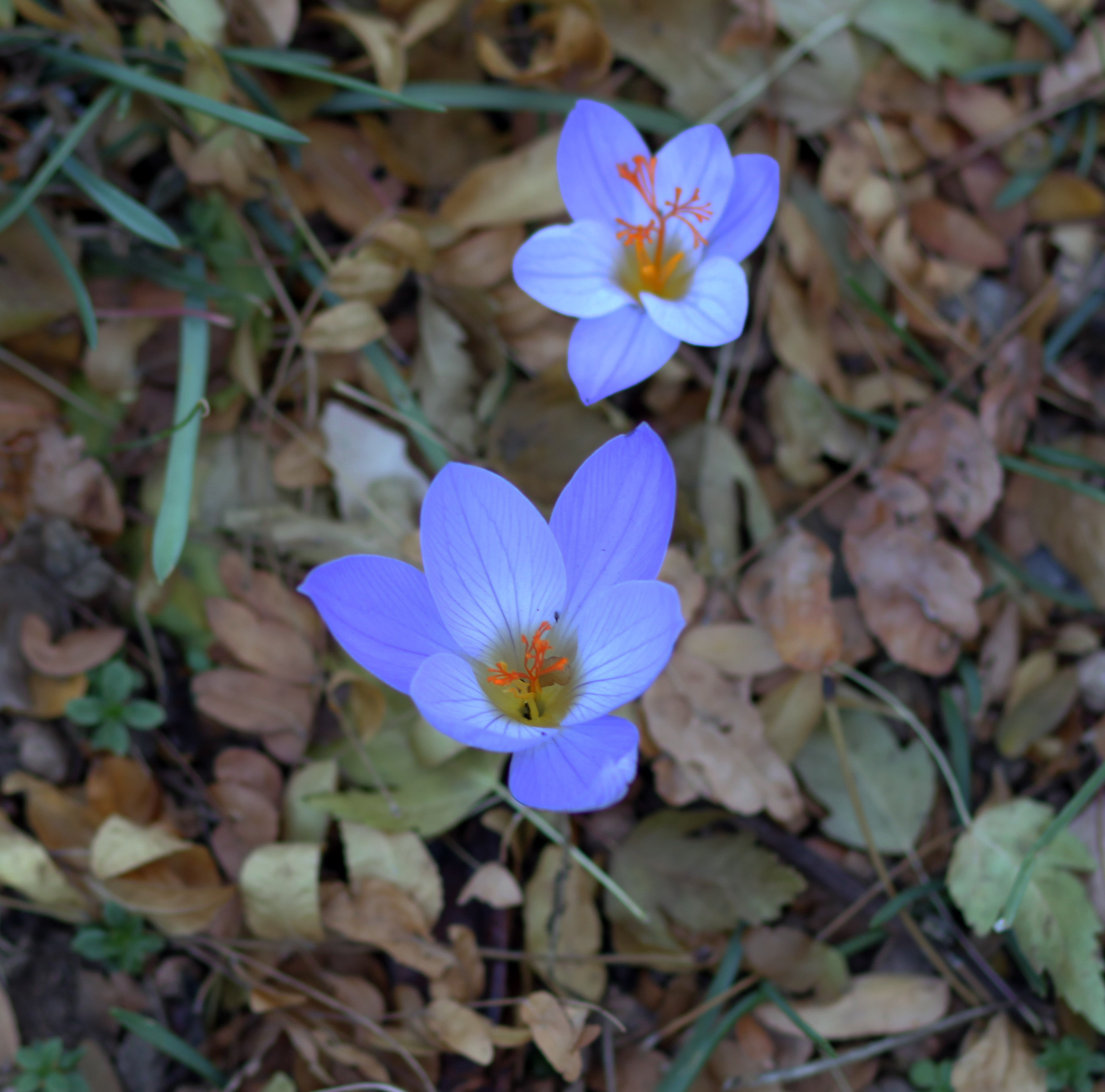 And a couple of Crocus speciosus. It looks like this’ll be one of those years when it blooms over a long period, rather than all of them blooming at once. The guy I live with insists that a lot were “done in by rodents”, but I wouldn’t be surprised if he accidentally sliced through them with a trowel planting other things.