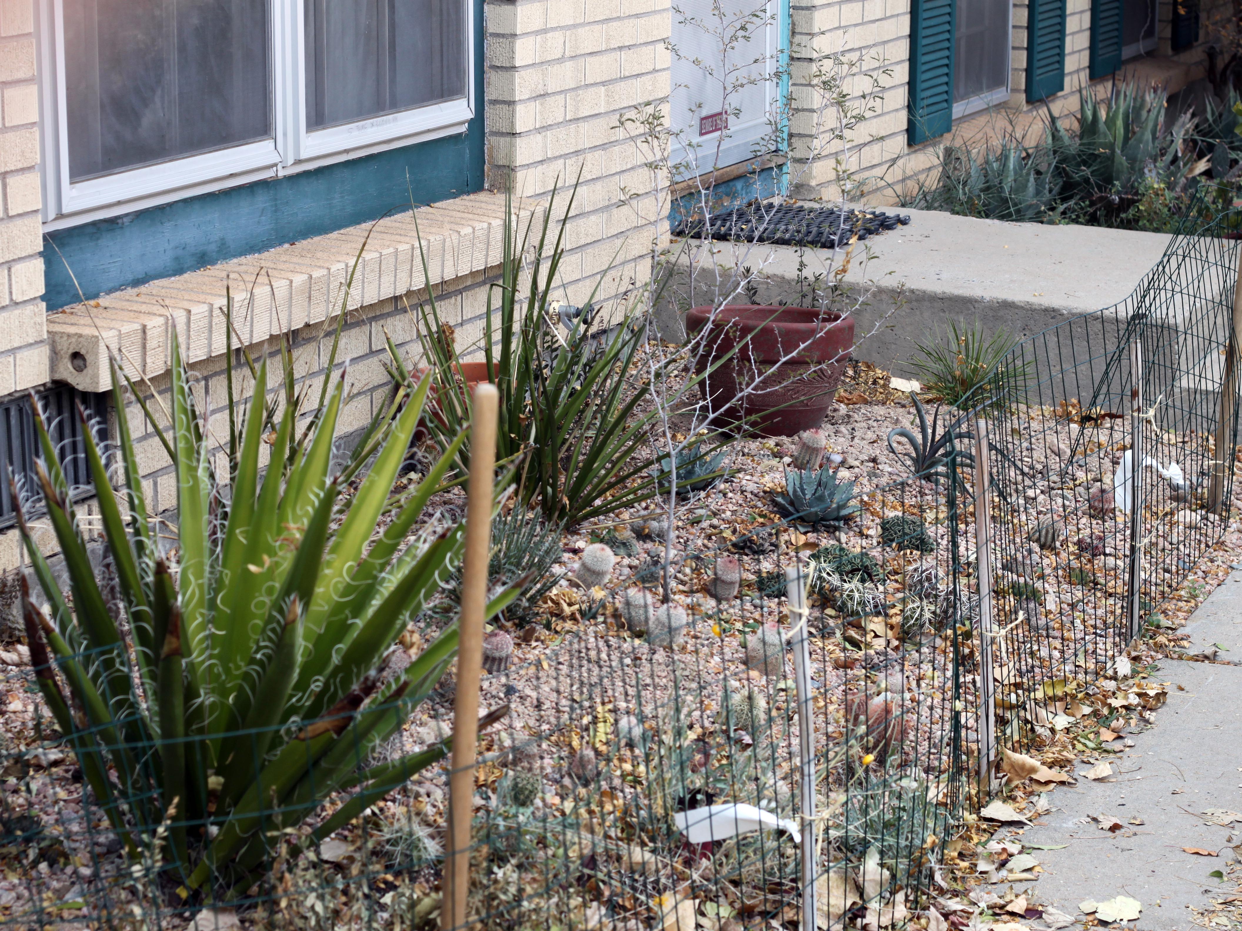 Too bad, chess, that the other guy living there doesn’t add more potted or in-ground flowering kale, Opuntia macrocentra, and even some green yuccas in the area at a safe distance…that looks great even once it gets colder there.