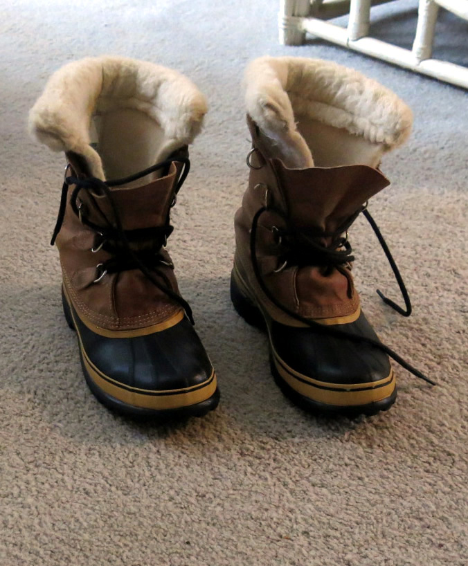 The other thing are his Sorels. His cold-winter paws. Snow paws, if you will.