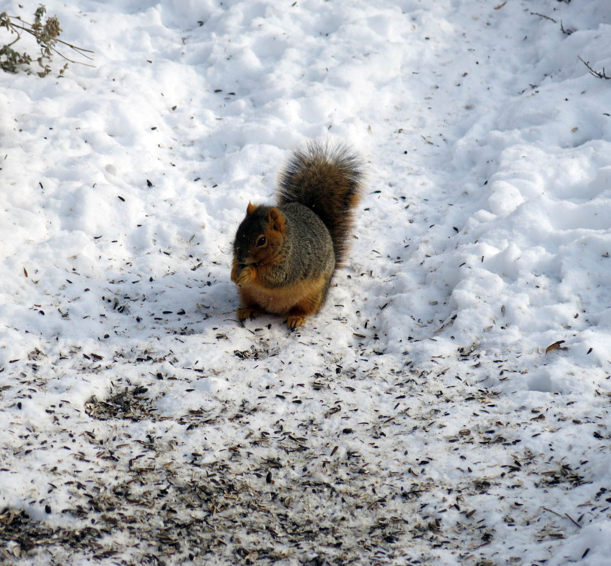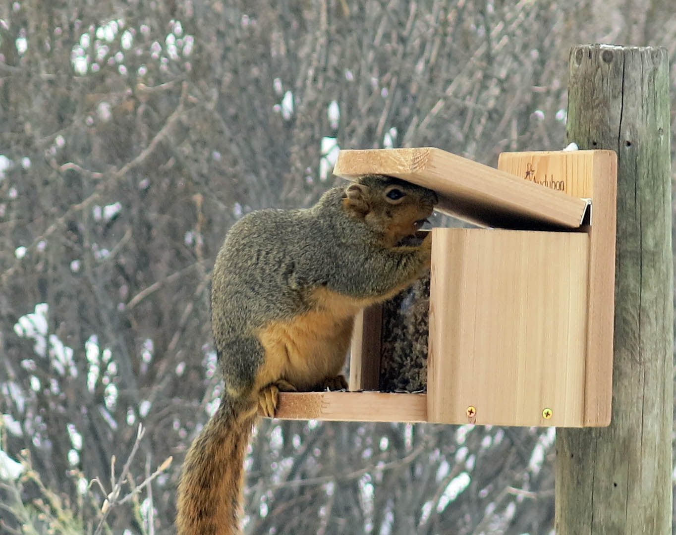 Thanks. Squirrels rarely move away from food, even if threatened with having their pictures taken. The guy I live with explained that that was what the funny bup sound was in the back yard. Bup. Bup. Bup. The lid of the squirrel feeder shutting.