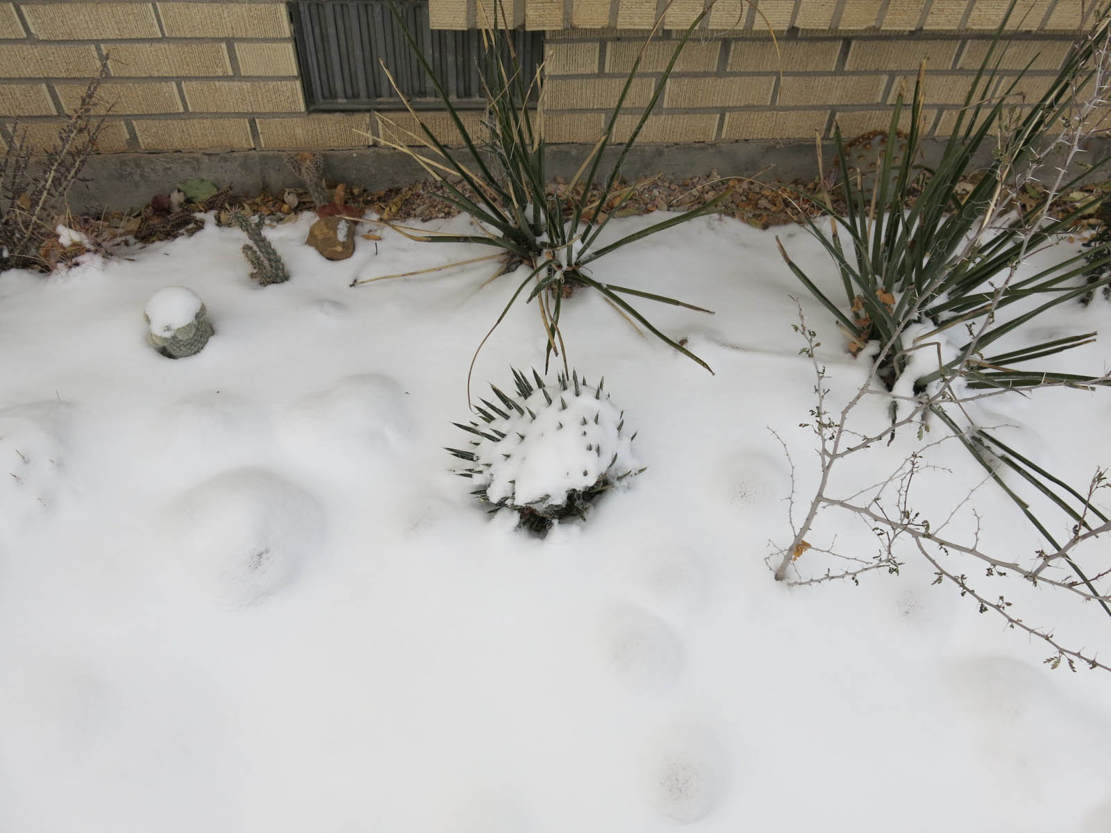 Love the agave bits poking through the snow. What a notion! We got rain today – yay! – and that’s our extreme weather for the year.