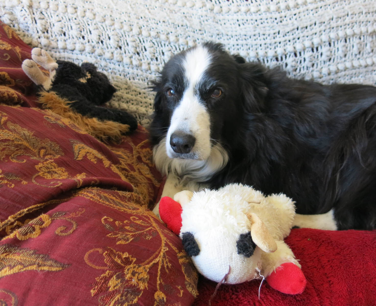 It wasn’t boring Chess, it was variety. I especially like you inn the snow pictures. And at the end of a fulfilling day there’s nothing like a lie down with one of your toys. The only thing which could have made it better was if you had a biscuit or a special treat. Bet you did!