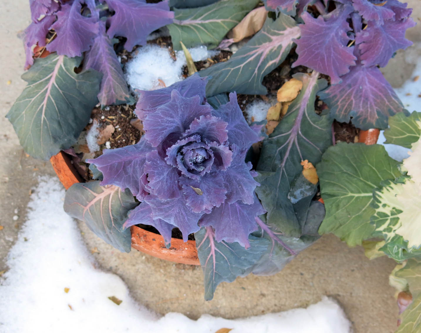 And then the flowering kale. The outer leaves are history, obviously, but the guy I live with says the middle parts of the plants look “moderately okay”. He’s not a kale expert.