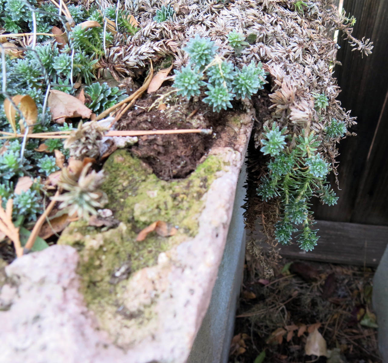 The guy I live with did in fact did have to show one of the squirrels how the feeder worked. He got the kale because they were a dollar a plant and they looked nice up until a few days ago when they suddenly didn’t, which coincided with the smell, which, he says, turned out to be a rotting cruciferous vegetable smell. The titanopsises, or titanopses, have flowers similar to delospermas and others of that ilk. Several of the mesembs, or “squishies” as he calls them, do bloom here in the winter, if it isn’t freezing cold. The thought of NYC brings a tear, or more than just one, to the guy I live with’s eye, thinking of being there with my mommy in January 1999, holding hands walking from the Guggenheim at night past Central Park, in the rain no less (it doesn’t rain here in January), stopping at a coffee shop and looking out at the January rain, then the next day going to a real Kosher deli and having pastrami sandwiches and knishes, and then going to the Metropolitan Museum of Art, where my mommy got to see all the paintings she knew from books. Sargents, etc. Typically, she didn’t want to go on the trip, and then talked about it all the time afterwards. Seeing Manhattan at night from the BQE, all lit up, the Brooklyn Bridge (“how many dawns, etc.”), stuck in Friday night traffic but listening to an excellent jazz station, and rain.