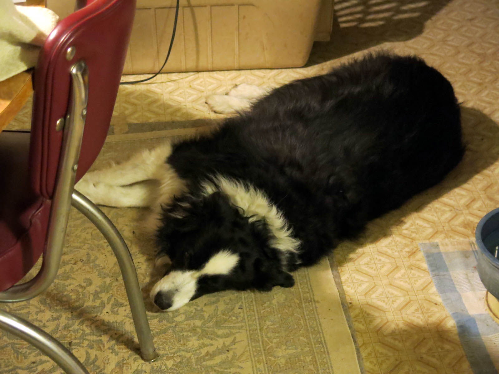 Here I am in a characteristic pose, starting to slip on the kitchen floor, which was not made with the paws of a purebred border collie in mind.