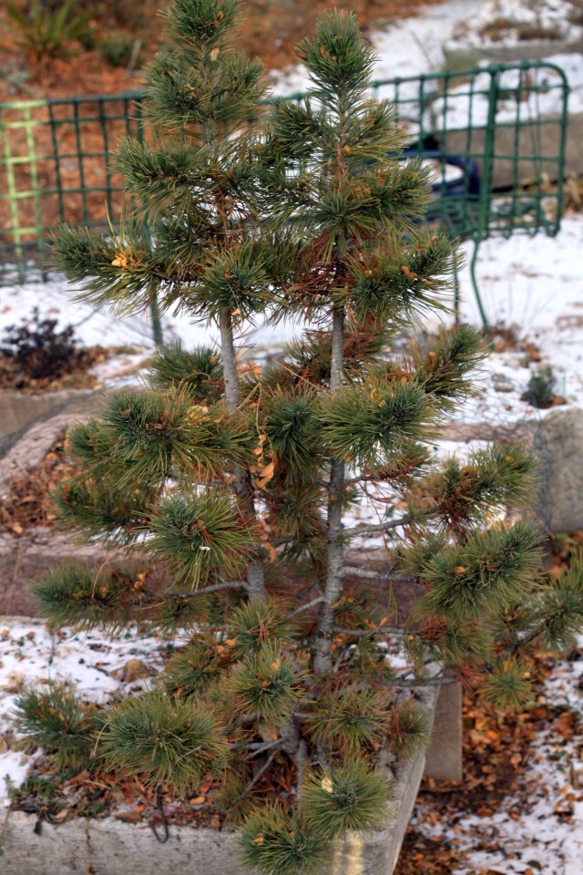 A dwarf limber pine (Pinus flexilis) growing in a trough. An unnamed selection made by Jerry Morris.