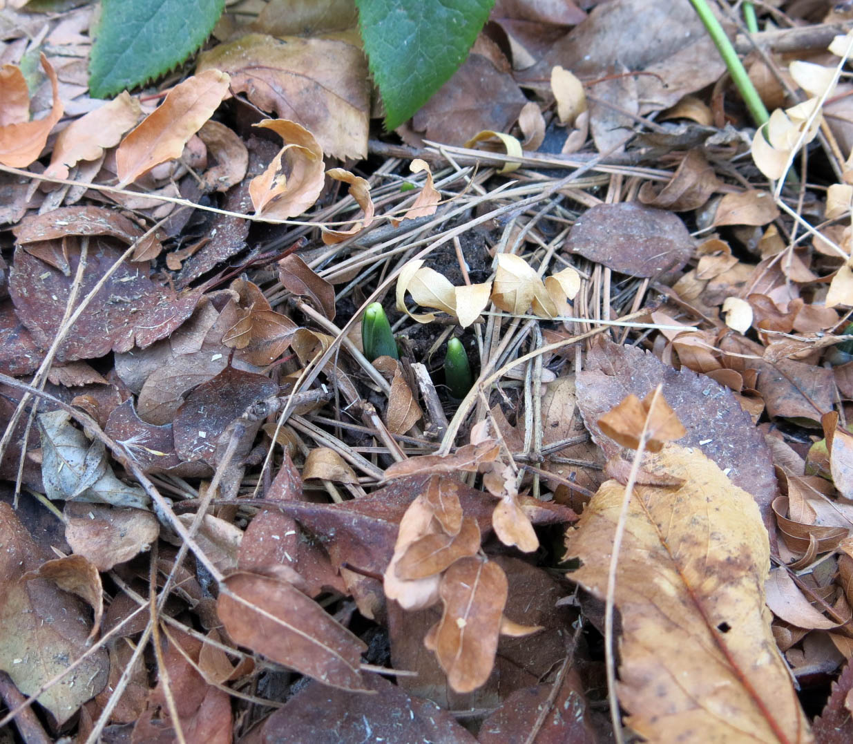 Oh, there is one thing that he said was pretty interesting. Out of curiosity he went into the shade garden (on the north side of the house) to look at things, the way he does sometimes, and lo and behold, there were snowdrops coming up.