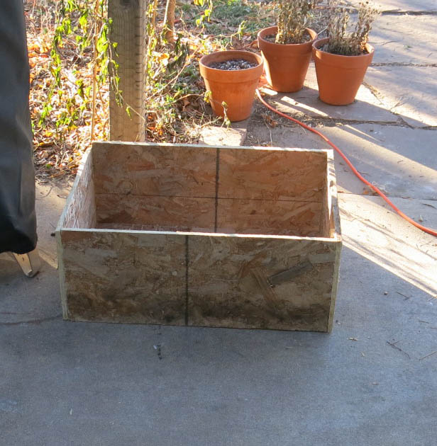 There really isn’t anything much to say about today, as usual, because hardly anything happened. The guy I live with spent a lot of time out on the patio, sawing and nailing. He made a box.