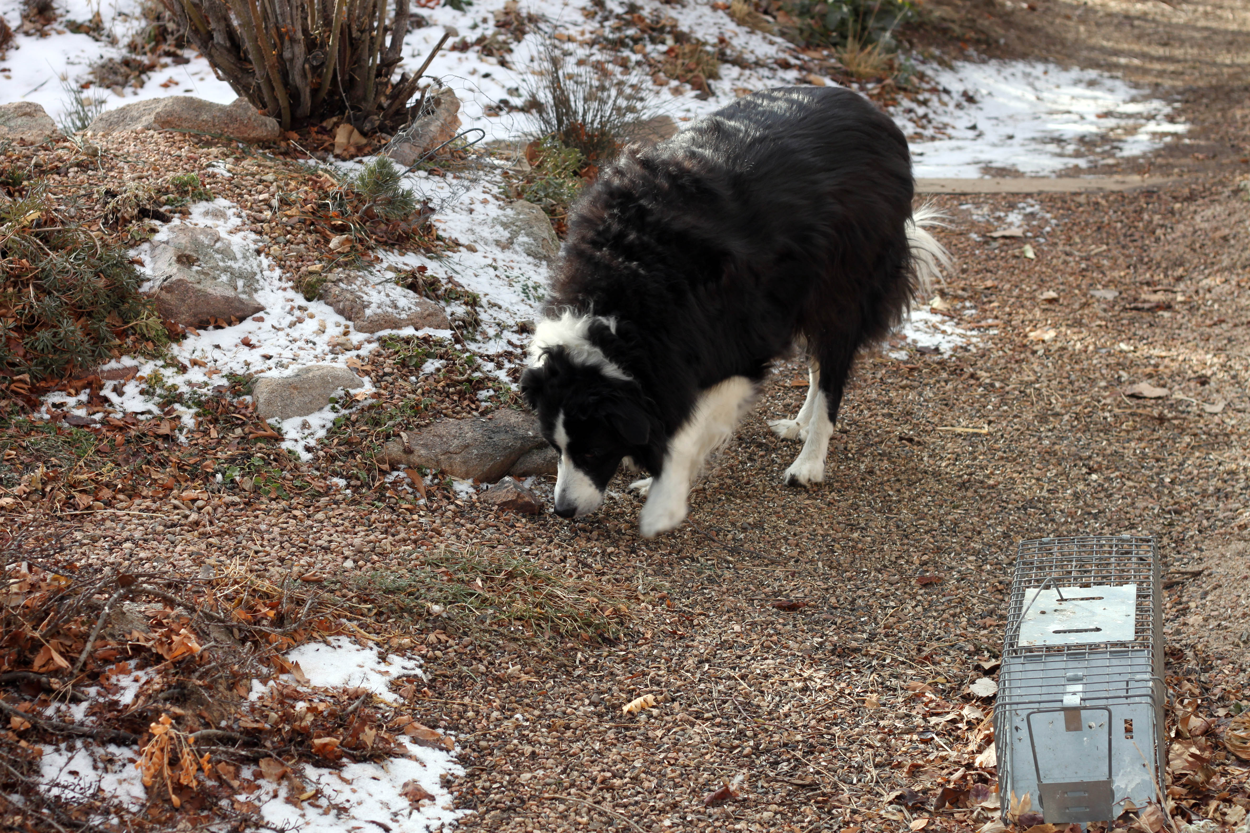 Looks like something is in the live trap! Maybe a locust pod? 🙂 Nice winter greenery there.