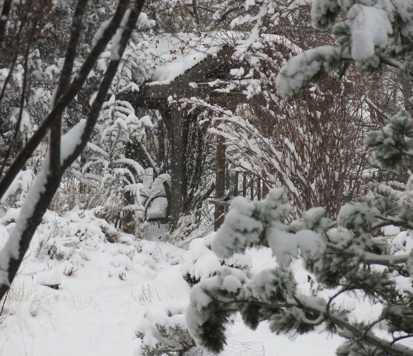 I go now to my own couch to read. Happy napping, Chess. Avoid frozen paws. Tomorrow the Chargers play in icy Ohio. Last time that happened, Dan Fouts’ throwing hand was frostbitten. He says he still can’t feel parts of that hand. Even though they’re raging pink, consider going back to the booties. Oh, that shot of the snowy garden is wondrous. The guy you live with is an artist too.
