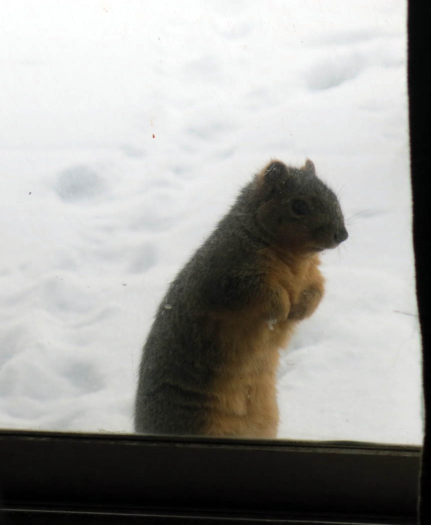 The guy I live with put out a whole bunch of shelled peanuts for the squirrels, and dried ears of corn, so they wouldn’t be completely miserable.