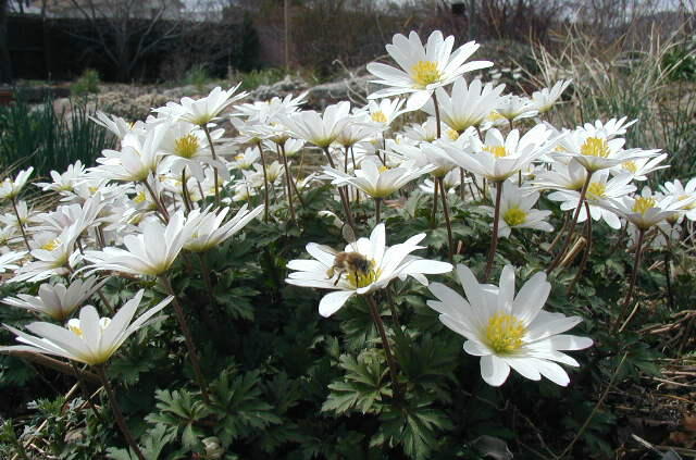 We don’t grow that anemone any more. It gets blister beetles and they devour the whole plant in a day. And besides, it needs way too much water in our garden. But we do have some more anemones, namely, Anemone blanda. They’ve seeded around in the garden here. (You may have noticed I’m going alphabetically, too.)