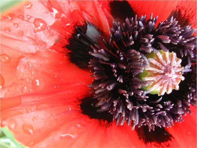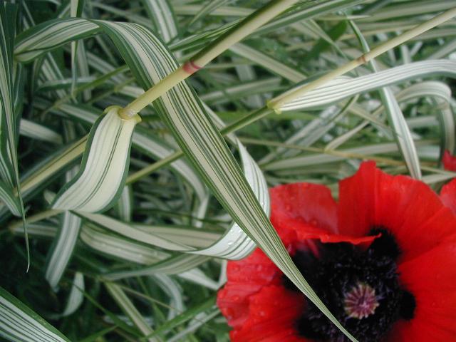 Some poppies. More ‘Marschall von der Goltz’, and a red one that my mommy didn’t like but took pictures of anyway (with “gardener’s garters”…the grass, I mean), and then ‘Victoria Dreyfus’. I think the poppies are gone now.