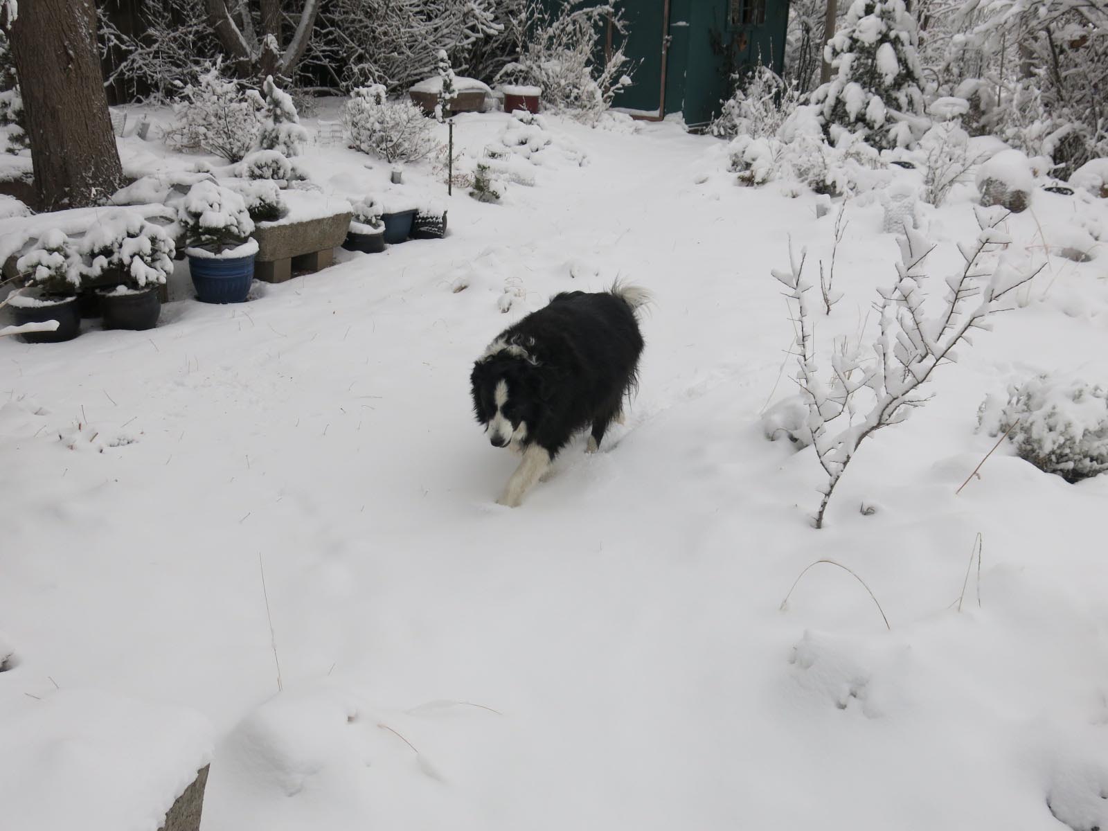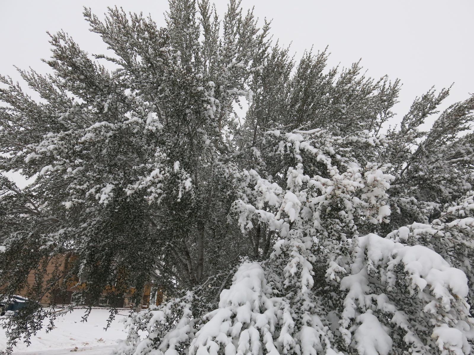 Yeah, wet snow. It clings to stuff. Gets into paw pads something fierce. It means it’s not very cold when it snows. Dry snow is actually better for some plants because it doesn’t act like rain, and rot things. Snow in May….. Between 1961, when the guy I live with moved to Denver, and 2000, it snowed once on the first of May. Maybe 1987, he says. Since then, it has snowed in May every single year but one. In some suburbs it has snowed in June. Snow, on blooming roses. He says when he moved here in April, 1961, there was snow on the ground, and he’d never seen snow before, but he should have taken it as a sign…… Back in March of 2003 there was a blizzard where we got five feet of wet, heavy snow. 150cm, I think. It snapped the Modoc cypress here right in half, and the juniper you see in some of the pictures (behind the scary burlap thing). Both the cypress and the juniper grew back. Picture of Slipper in the blizzard of aught three. https://paridevita.com/2012/10/25/the-white-stuff/ Another winter wonderland…