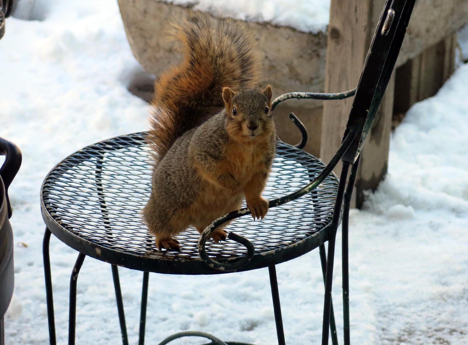What a chubby little squirrel, definitely does not need any more food. Good to see the weather has improved enough for your guy to get out doing what he loves best, second best that is after looking after you. Anyway you can never have too many seedlings I say. That was pretty interesting getting up close and personal with Norm the coyote, make sure guy takes his camera in future, would love to see Norm. Yes excellent post especially start and finish, I think I might keep the last pic for my desktop tonight instead of the big czar Chess.