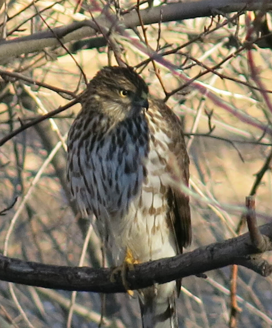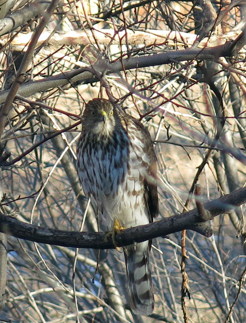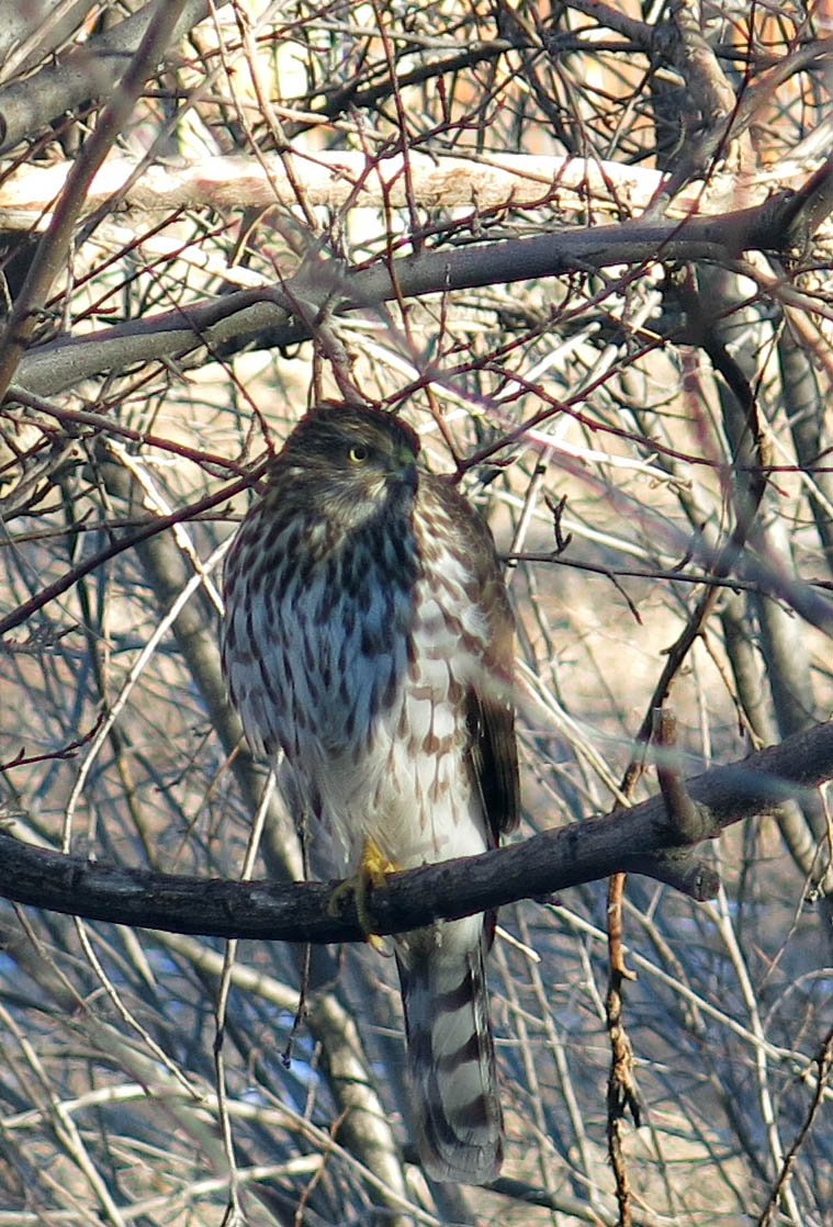 Its about time for Cooper’s hawks to be pairing off and starting a nest. This young lady is possibly looking for a mate and a nice tall cottonwood to live in. Mostly they eat small birds and pigeons, but aren’t above having a tasty rodent either. They are very territorial, so if near a nest, beware. Coops have adapted to suburbia very well-lots to eat, mature trees and not many enemies. As you found out, you can get close unless they are breeding/nesting. Can you tell I think they are very cool?