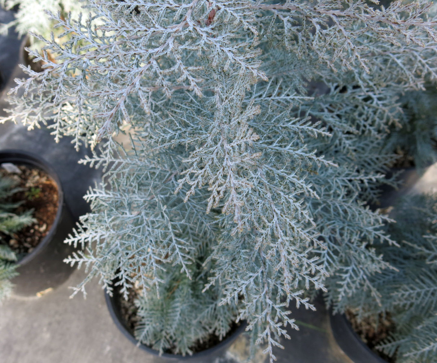 This, below, is what caught his eye. Cupressus arizonica ‘Fandango’, raised by Allan Taylor. The pictures don’t do justice to this beauty. The branches are flat, like an arbor vitae or something. But bluer.
