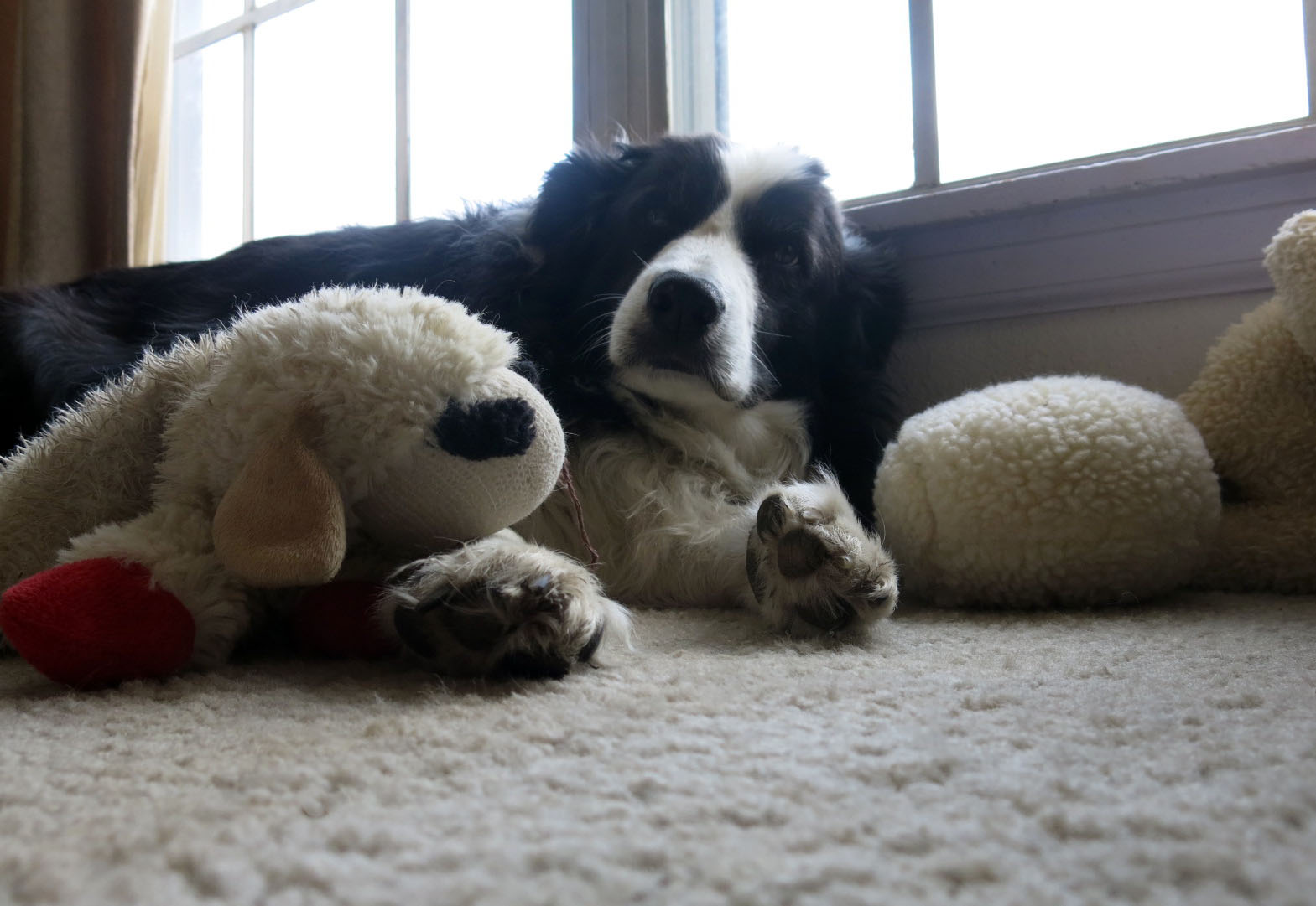 Absolutely adorable, you and the play toys on the rug under the window.