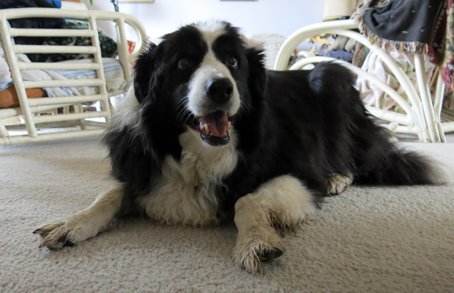 Thanks. Though, it’s Chess, like the game. Black and white. The guy I live with wanted to name me Neutron, the Wonder Dog, but my mommy vetoed that. I think Neutron would have been a great name, though border collies traditionally have one-syllable names. I’m the only one of the four who have lived here who have had one of those, though. I think I’m probably less sad than the guy I live with, though, because now the whole world revolves around me. It almost makes me dizzy to think of it.