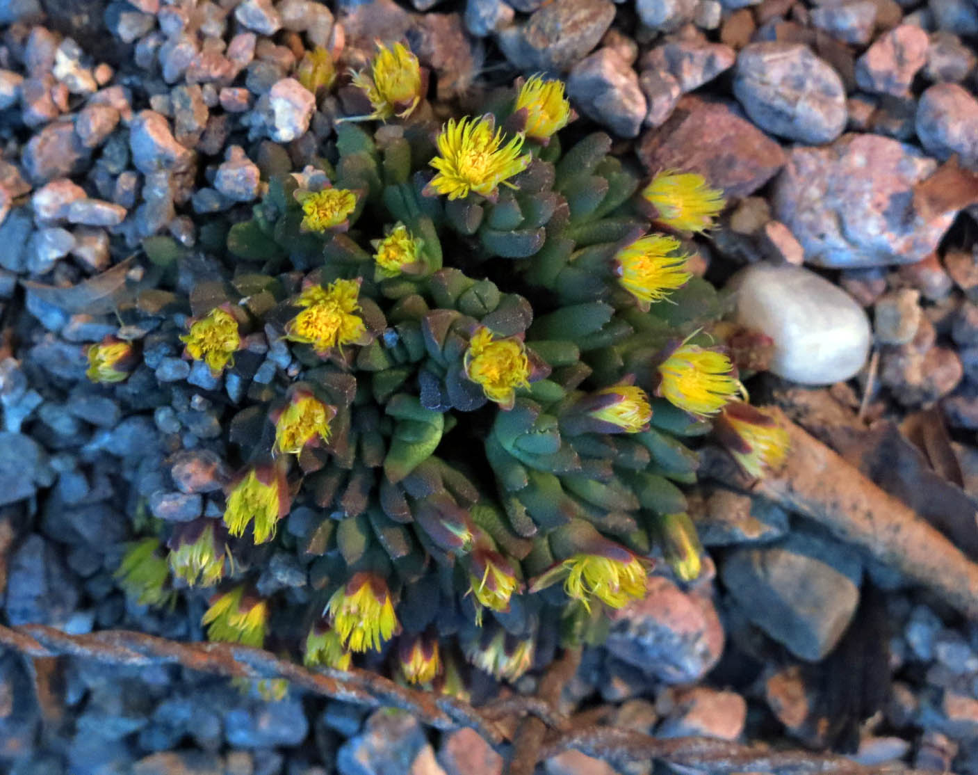 Thanks. The guy I live with thinks (for once) that the tests will be okay, since he watches me very closely, obsessively even, and the Rimadyl has really helped, but the tests have to be done. Just to make sure I can still keep taking it; that’s the whole point. But I haven’t eaten in almost two hours now. ….. I do know that I get tested and stuck with needles way more than the guy I live with does. I know that says something, but still, two whole hours without food. The guy I live with said there used to be a stomatium in the back yard rock garden and it had these little yellow bottle-brush flowers at night, and he would try to get my mommy to come out at night and sniff the flowers. She never wanted to, because this was in February. Way back when winters here weren’t so awful. He says Stomatium agninum is the one that smells like bananas, and you don’t even have to bend down to sniff it.