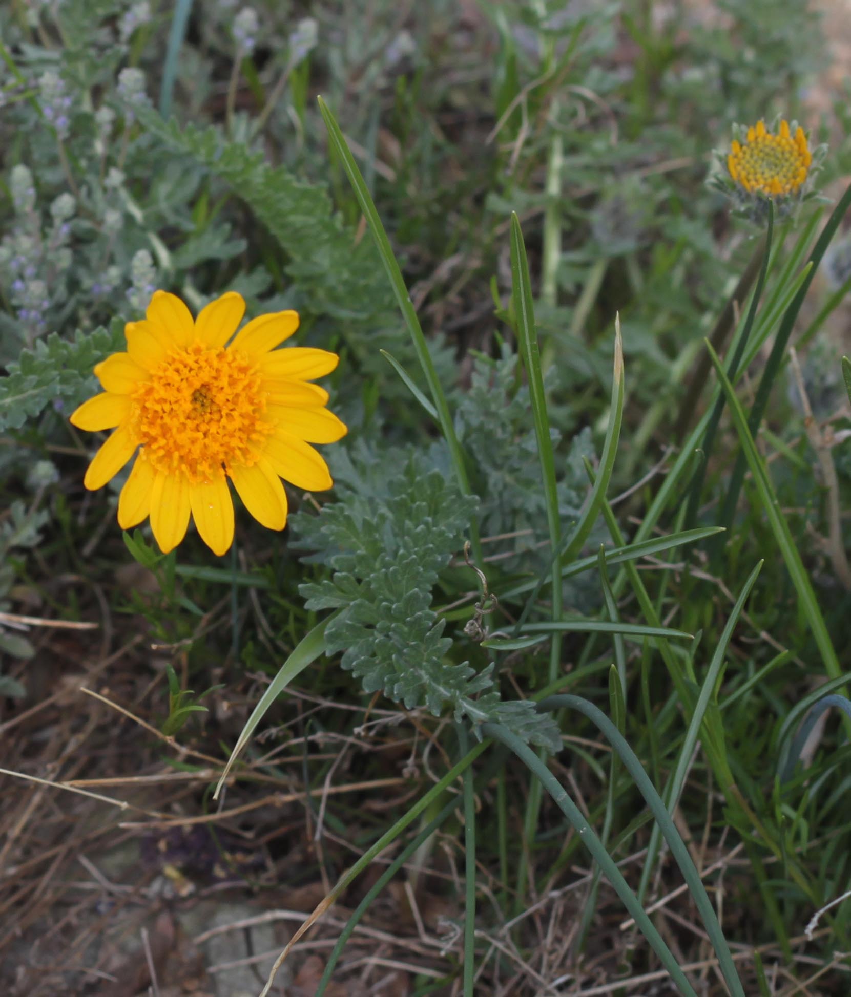 Balsamorhiza sericea. This doesn’t look like much of a big deal, but the guy I live with said it took fifteen years from seed to flower. Flowering for the first time ever this year. I’m surprised at how patient he is. There’s some crocus foliage there too.