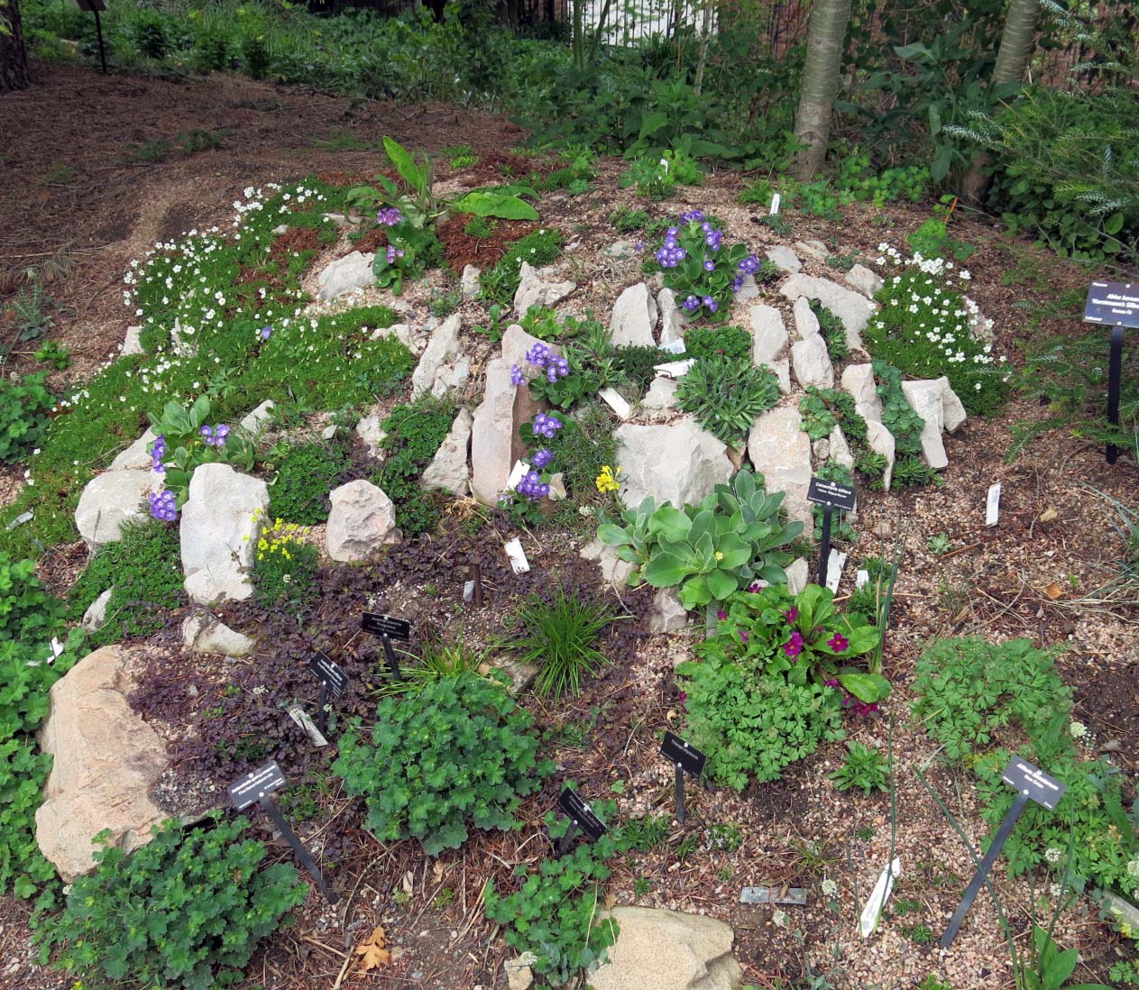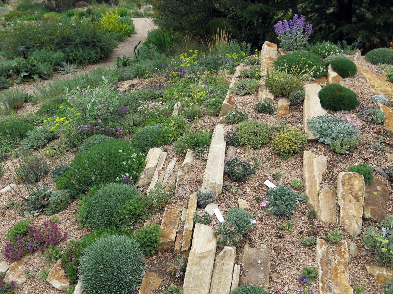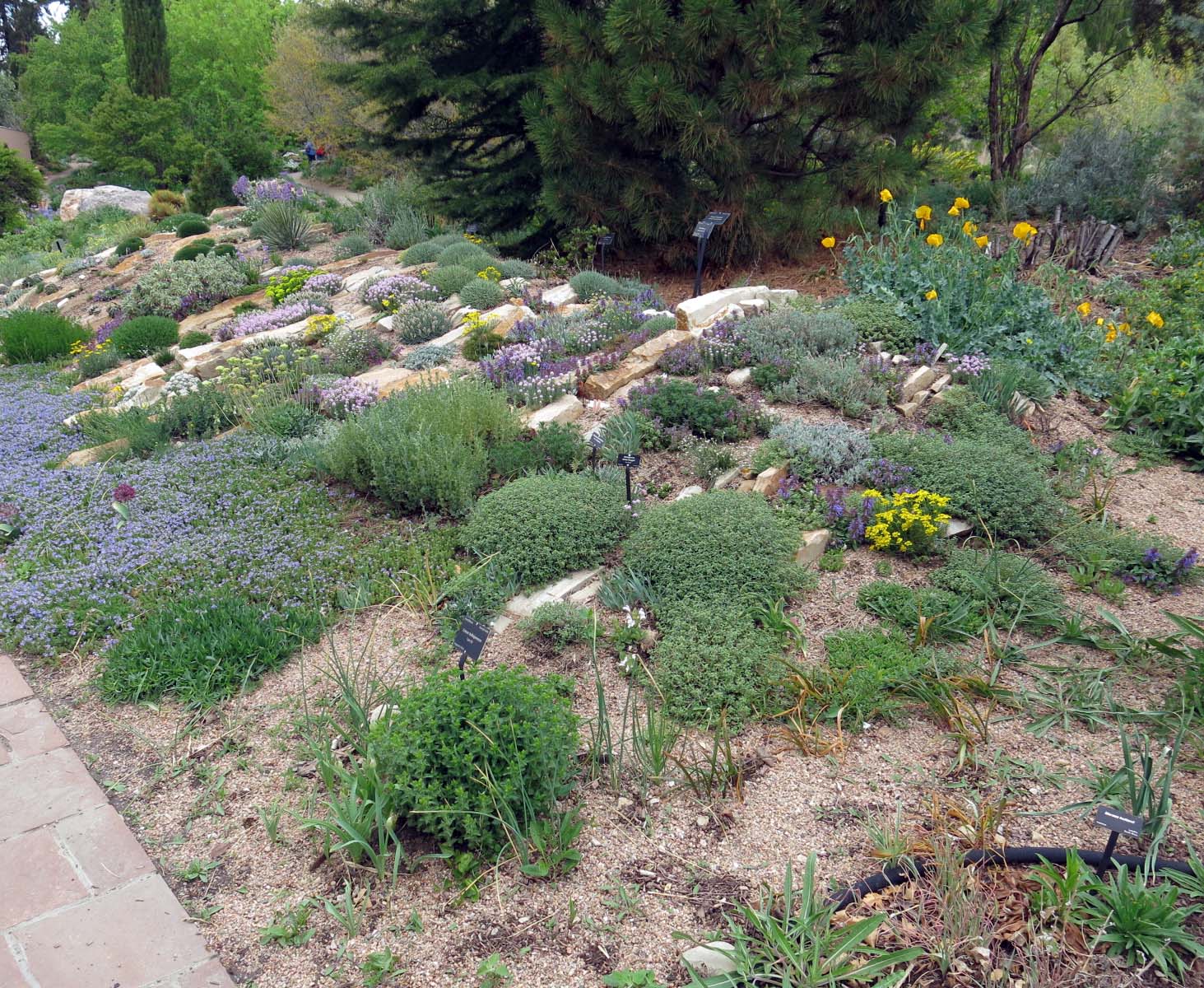 So, photos are seasonal, I can now make sense of crevice gardens where in other excursion photographs I had to take it on faith. Gorgeous. Not doable on our flat plot on our flat island, alas. Still, one can admire, and buy the terrific Acanthus syriacus, to plant flatly. Thanks, Deborah Farrell, I order tomorrow, Sunday being traditional interwebz order night. Segueing, love the new pot arrangement, and I have some o’ them pots. Perhaps … 92 degrees F here on Tuesday. BTW, asked my DBG curator friend Loddie about the crevice plantings when we met at the Huntington Gardens Great Rosarians thingie, whatever, in January, and she was puzzled. After a while, she remembered, oh, yeah, those new crevice gardens. Rose freaks evidently find it difficult to focus on Things Other. Or perhaps brain waves were disarranged journeying from Denver Blizzard to SoCal paradise. In closing, I loves me a high-end plant sale second only to a high-end vintage or thrift store. With brie aftermath. Keep those photographs coming.