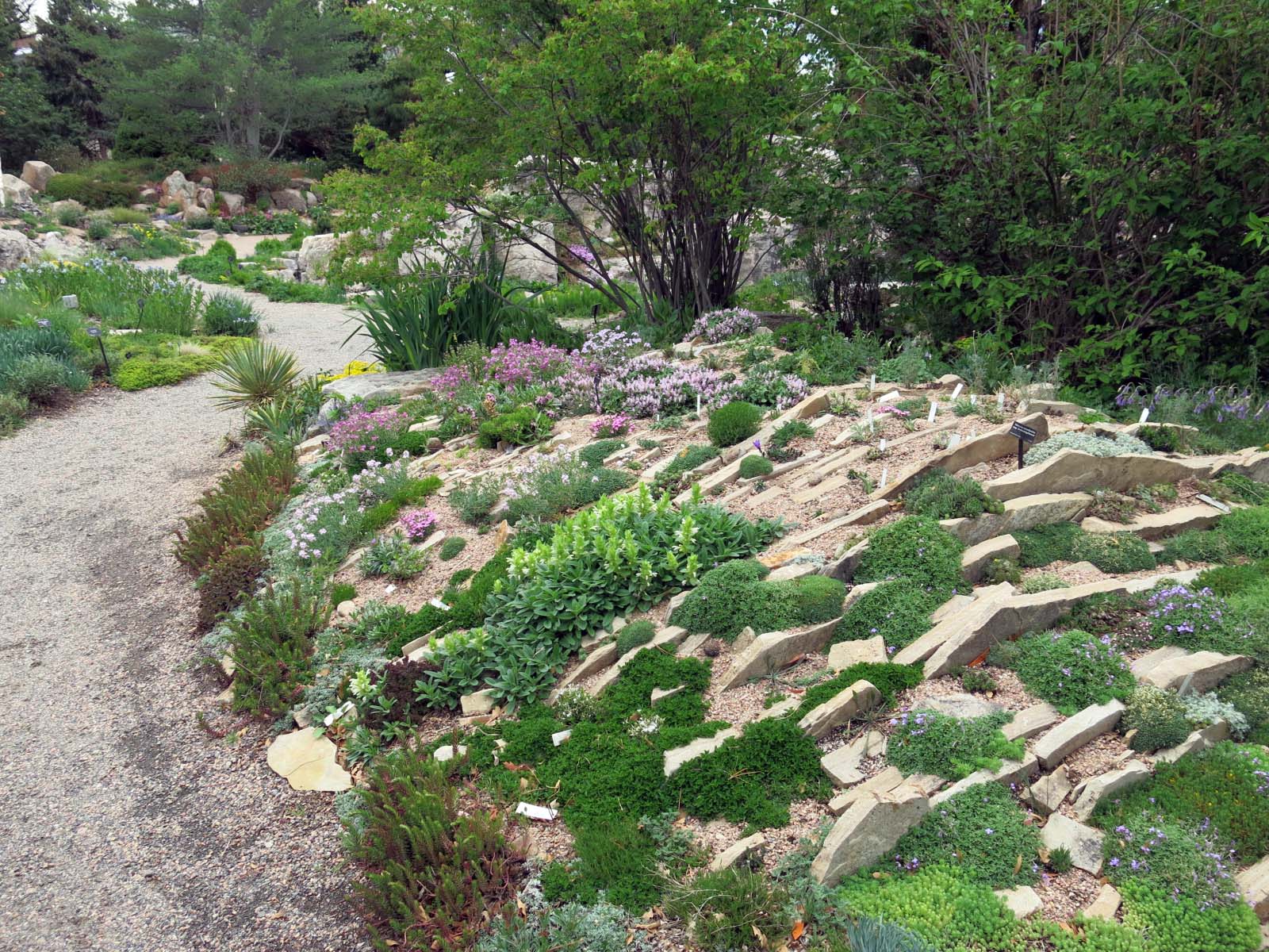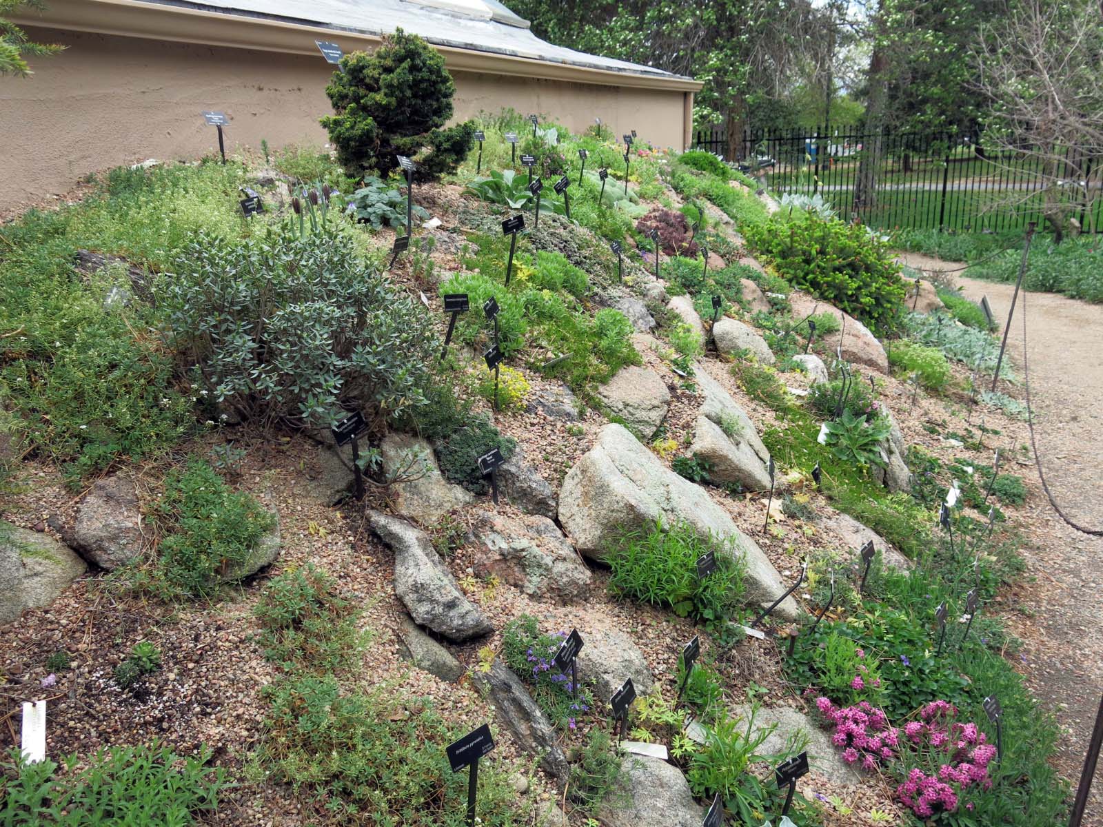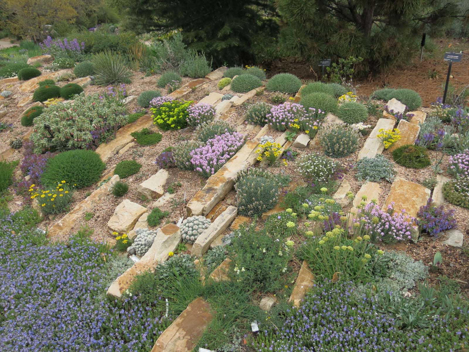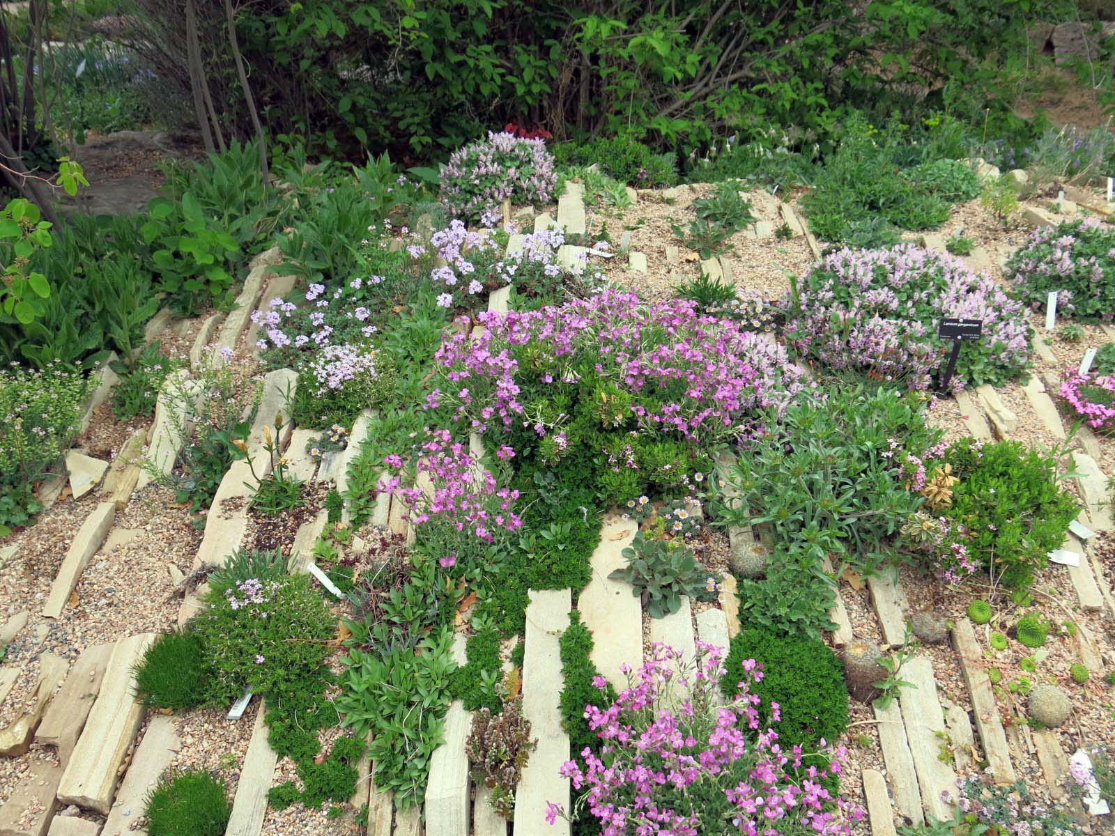 So, photos are seasonal, I can now make sense of crevice gardens where in other excursion photographs I had to take it on faith. Gorgeous. Not doable on our flat plot on our flat island, alas. Still, one can admire, and buy the terrific Acanthus syriacus, to plant flatly. Thanks, Deborah Farrell, I order tomorrow, Sunday being traditional interwebz order night. Segueing, love the new pot arrangement, and I have some o’ them pots. Perhaps … 92 degrees F here on Tuesday. BTW, asked my DBG curator friend Loddie about the crevice plantings when we met at the Huntington Gardens Great Rosarians thingie, whatever, in January, and she was puzzled. After a while, she remembered, oh, yeah, those new crevice gardens. Rose freaks evidently find it difficult to focus on Things Other. Or perhaps brain waves were disarranged journeying from Denver Blizzard to SoCal paradise. In closing, I loves me a high-end plant sale second only to a high-end vintage or thrift store. With brie aftermath. Keep those photographs coming.