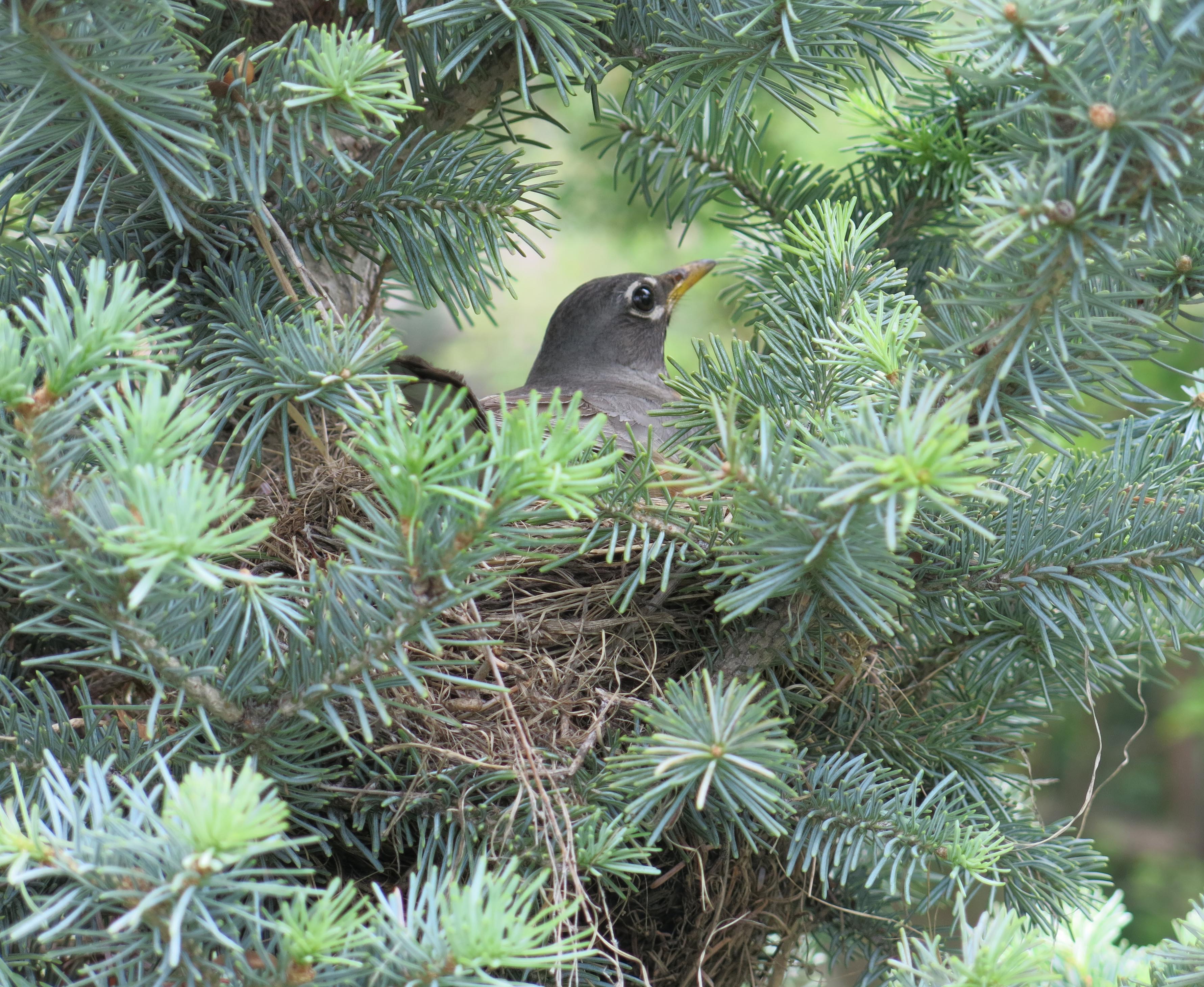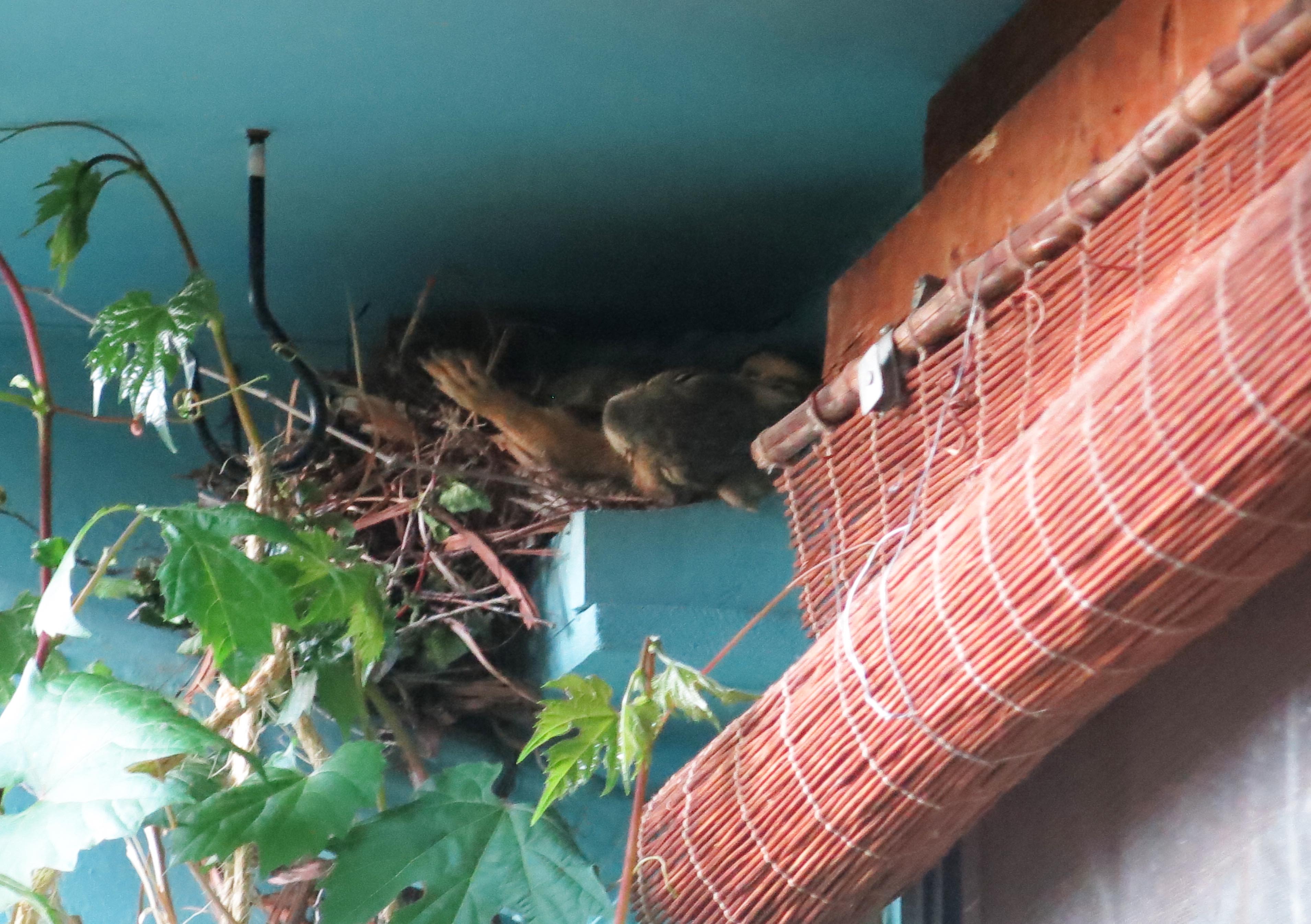 Yesterday evening she fell asleep while we watched her, and Earl climbed up the grape vine and snuggled into the nest, beside her, though you can’t really see him in this picture.