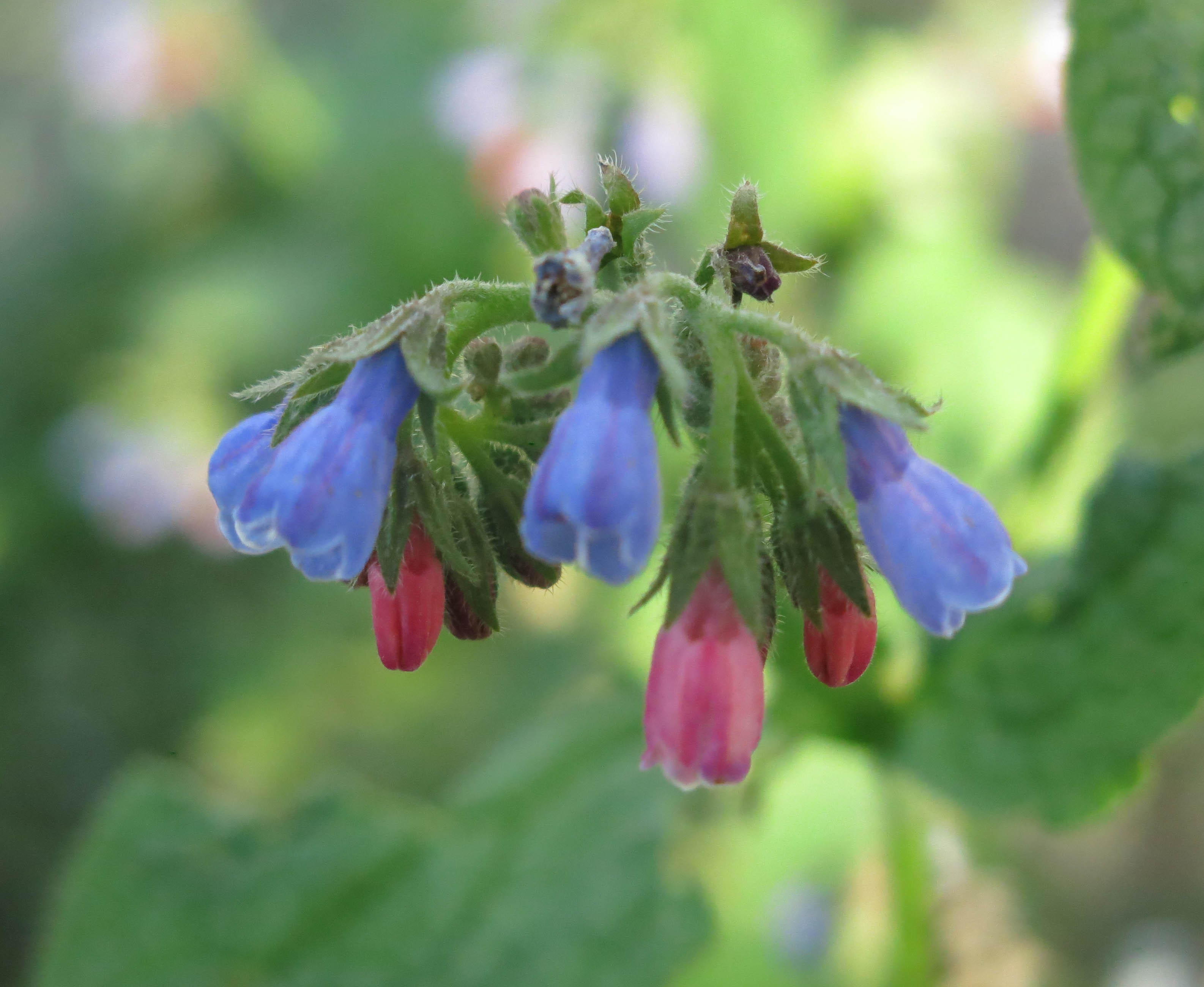 This next one, “Viette’s dwarf form” of comfrey, isn’t very dwarf, but has been here “since before there were border collies”, that is, in the Dark Ages here, back when the guy I live with desperately wanted a watered, “eastern-style” garden, which didn’t work out as well as he thought it would, this climate being “noted for general awfulness” and all that other whiny stuff. Whatever, huh. The garden isn’t like that at all any more, but the comfrey still lives. I’m not sure what he was focusing on here.