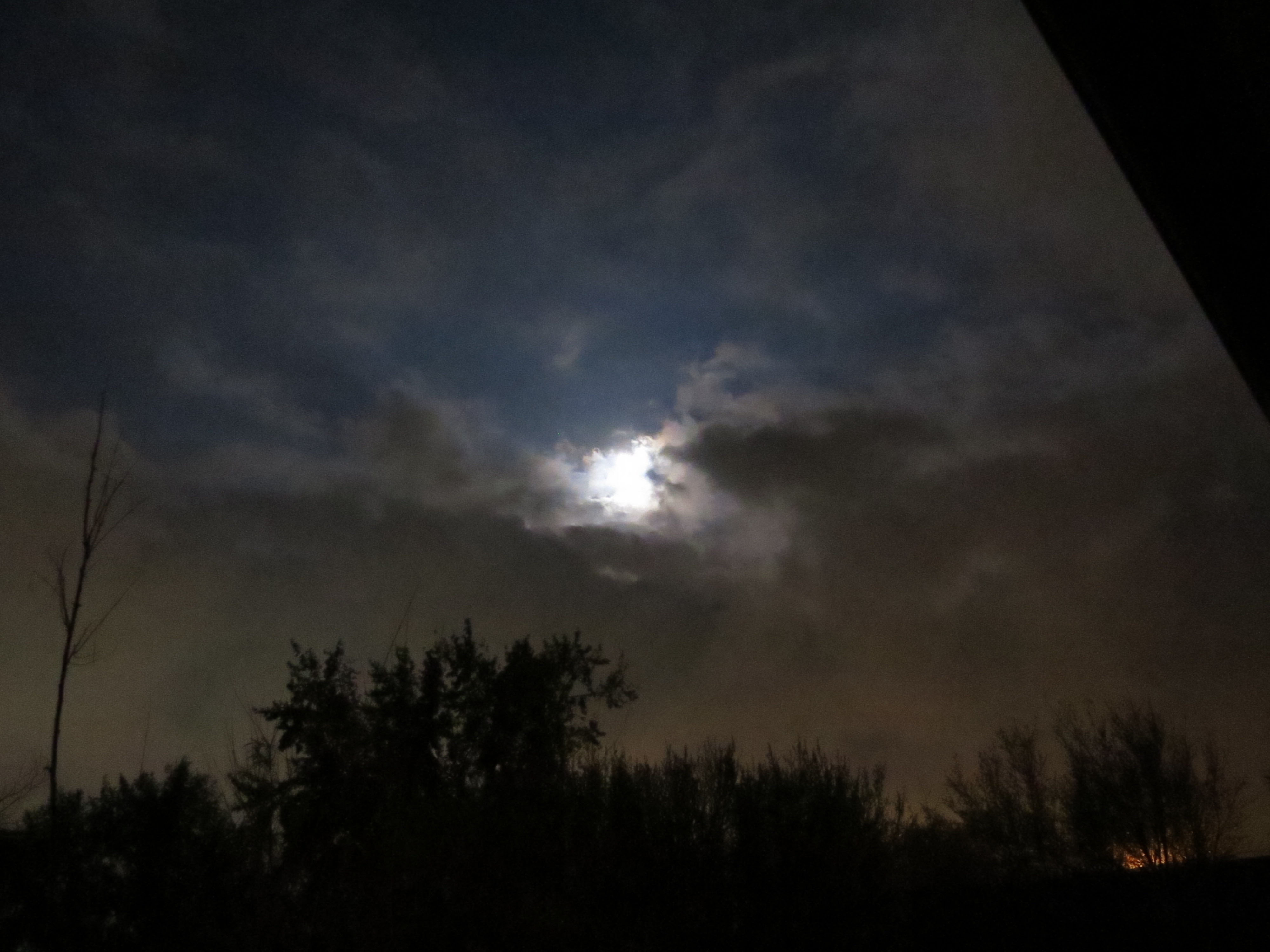 Well, right now I would say that that’s all I have for today, but the guy I live with, who, aside from being busy rooting cactus and watching grass grow, has been putting hawk moths outside, as I said, and the other night he put one out in the front yard, and saw the moon, and had just read the camera instructions where there’s a button you push and you can take “beautiful night pictures without the use of a tripod”, and so he took some moon pictures, and if I didn’t show them, he’d be all put out and stuff.