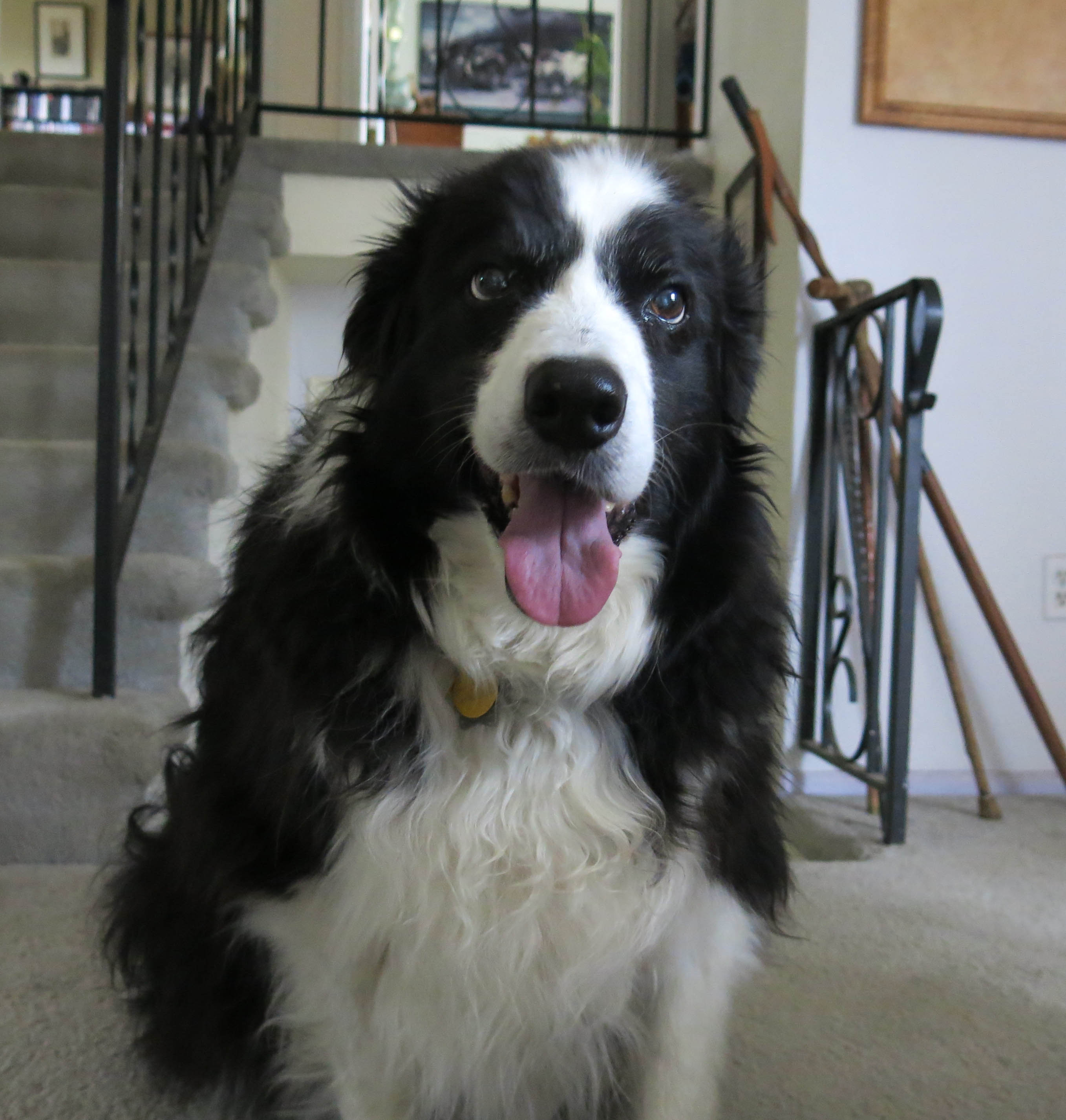 Here I am in a characteristic pose. I’m a lot more nervous about the weather than I look, but that’s typical of a purebred border collie, you know.