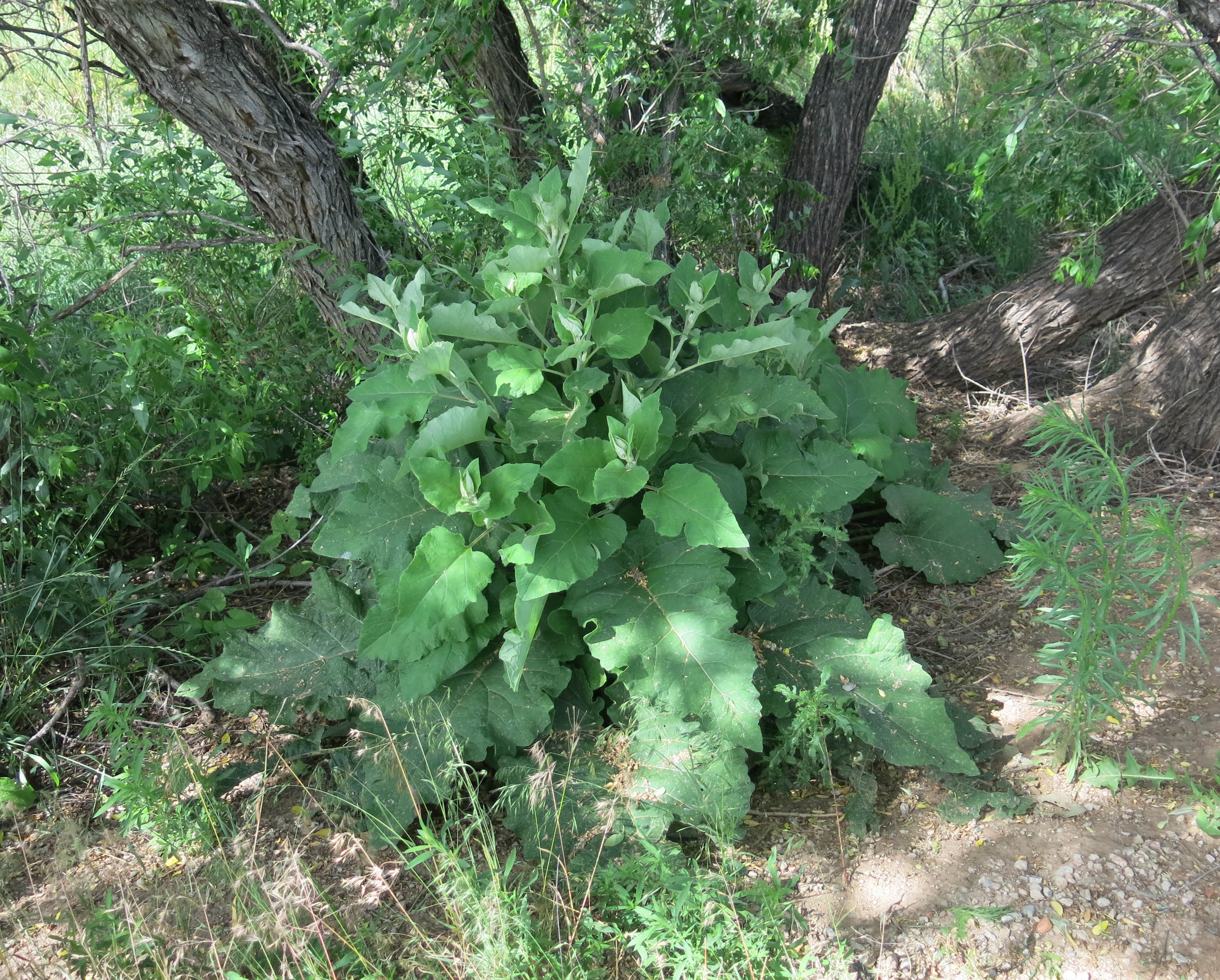 Huge burdock (Arctium lappa) plants along the canal road.