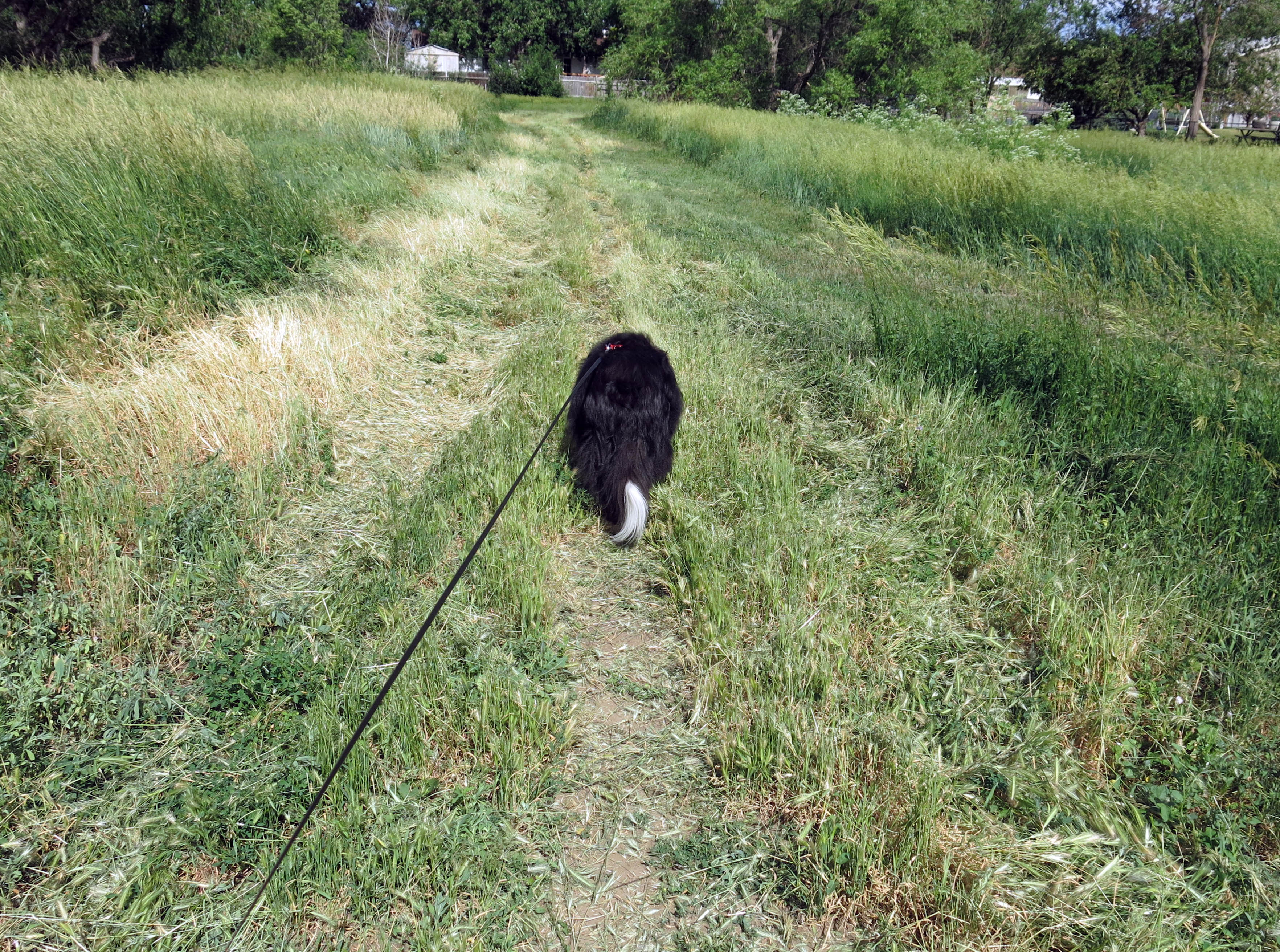 Okay, I guess we covered everything. A few garden pictures, a lot of complaining about the weather, and the foxtail, and the mowing mentality of the powers that be, and all that. I’ll close now with a picture of me struggling through the hay and foxtail awns on my way home.
