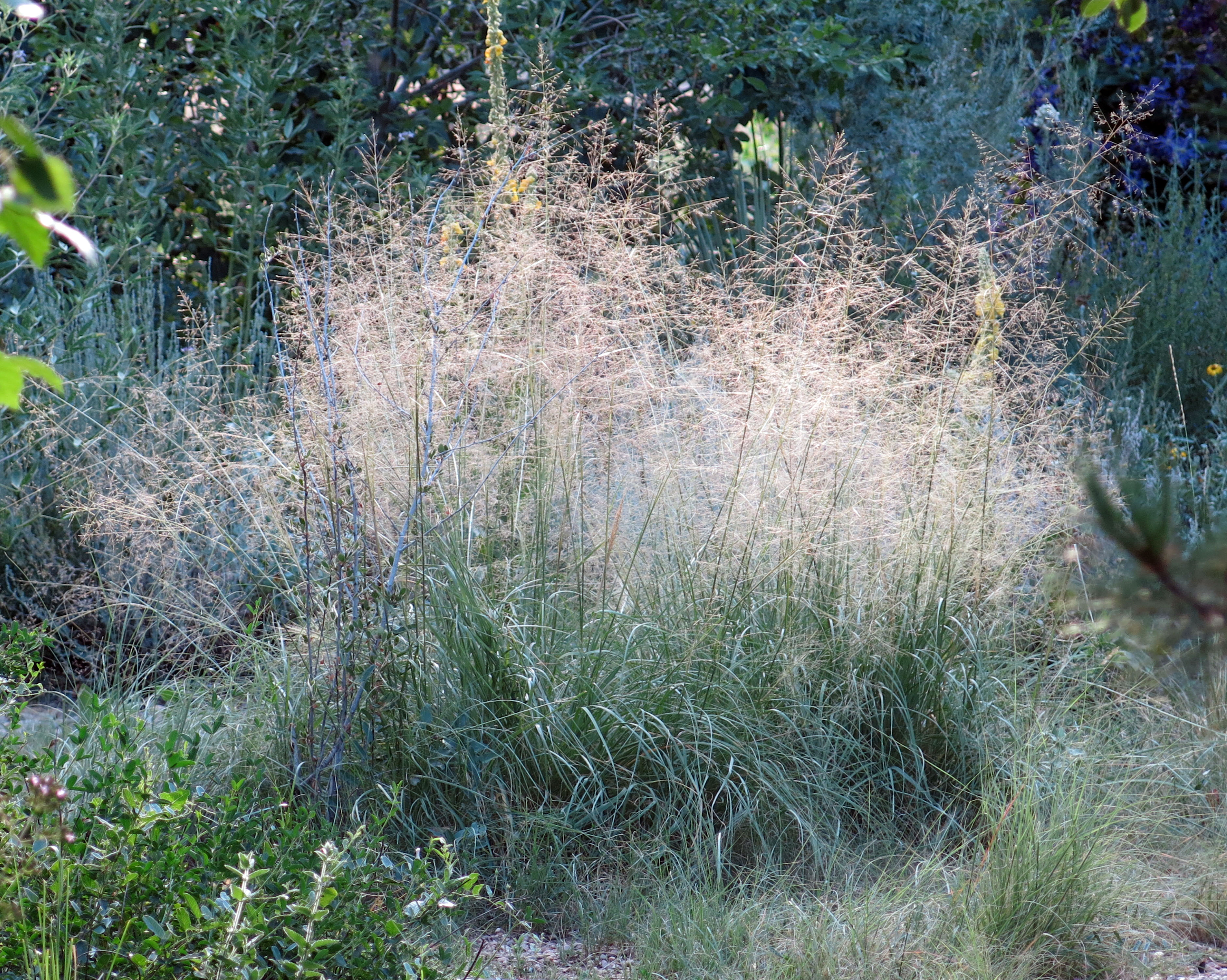 The cloud of grass in your lawn is beautiful. Bet it looks spectacular at sunset. Does that tall stalk in the background of something verbascummy-looking give you something at which to aim?