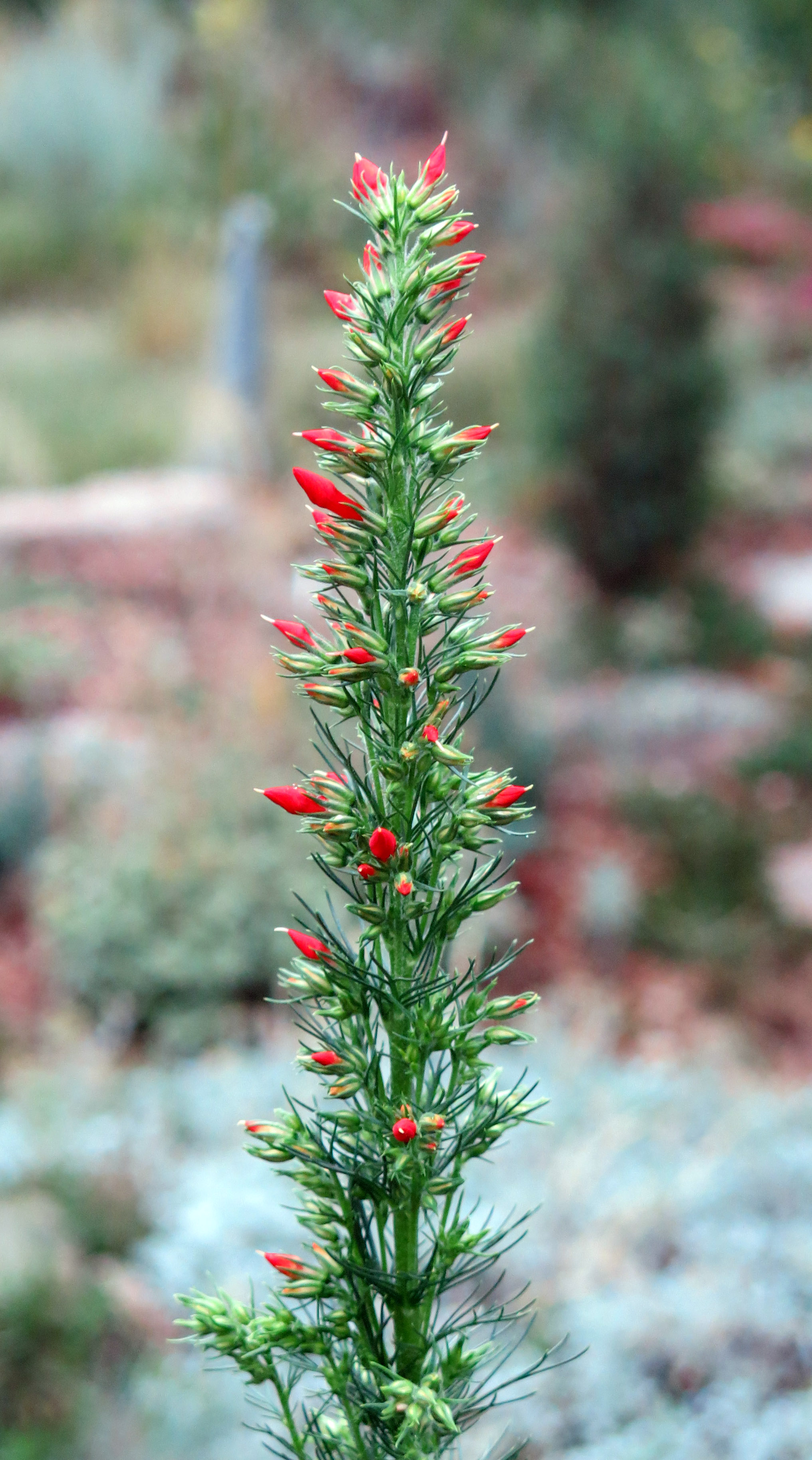 We have a whole bunch of Ipomopsis rubra starting to bloom. They’re biennials. The guy I live with (who was fiddling with exposures or something when he took these pictures) says he’ll call the fire department next week and tell them not to worry.