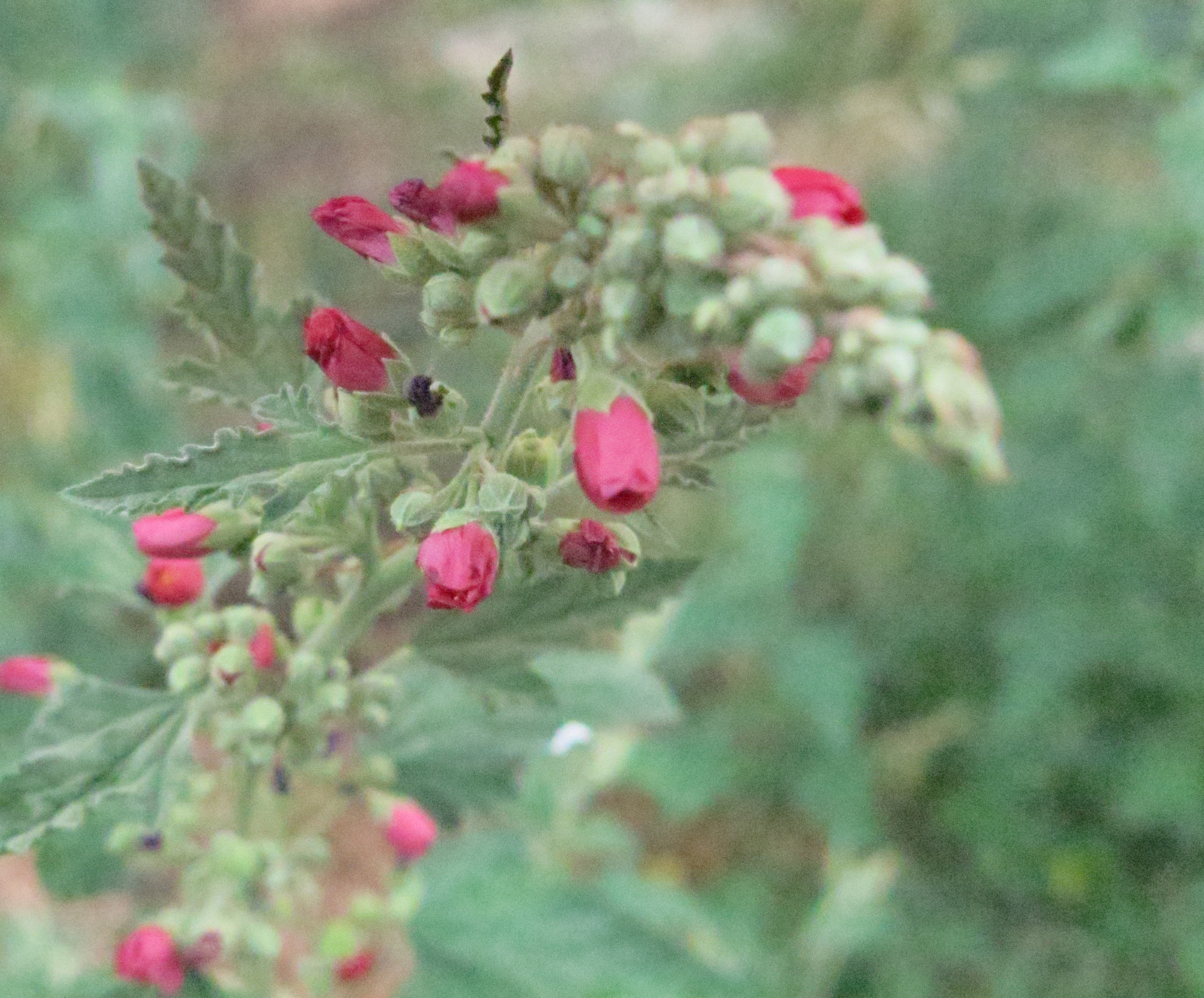 Here’s a sphaeralcea in bud, probably S. fendleri, under the oriole feeder. There are so many orioles here, the guy I live with had to buy a whole bunch more grape jelly, and some oranges.