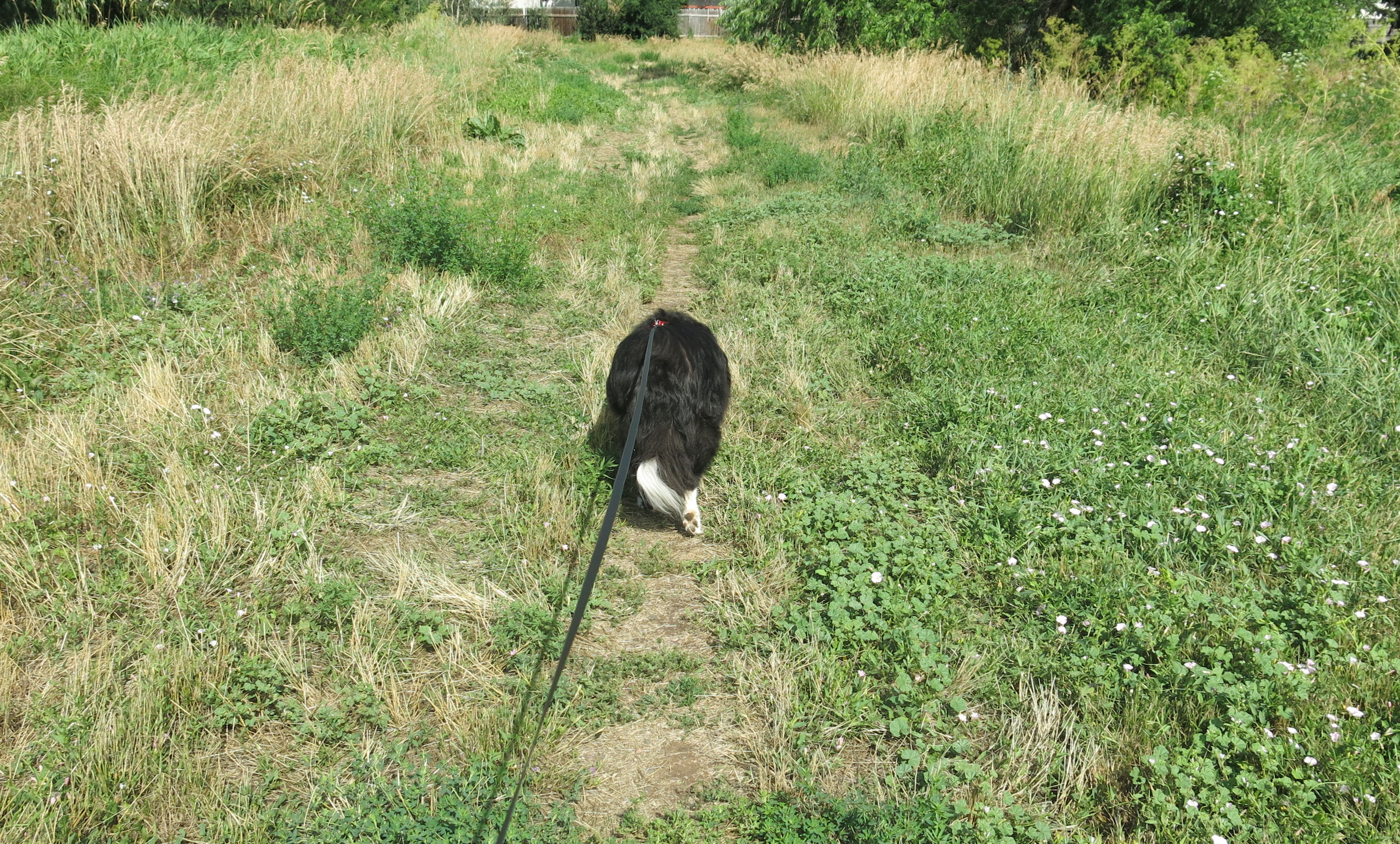 Here I am on my afternoon walk, heading home. The green is mostly from weeds.