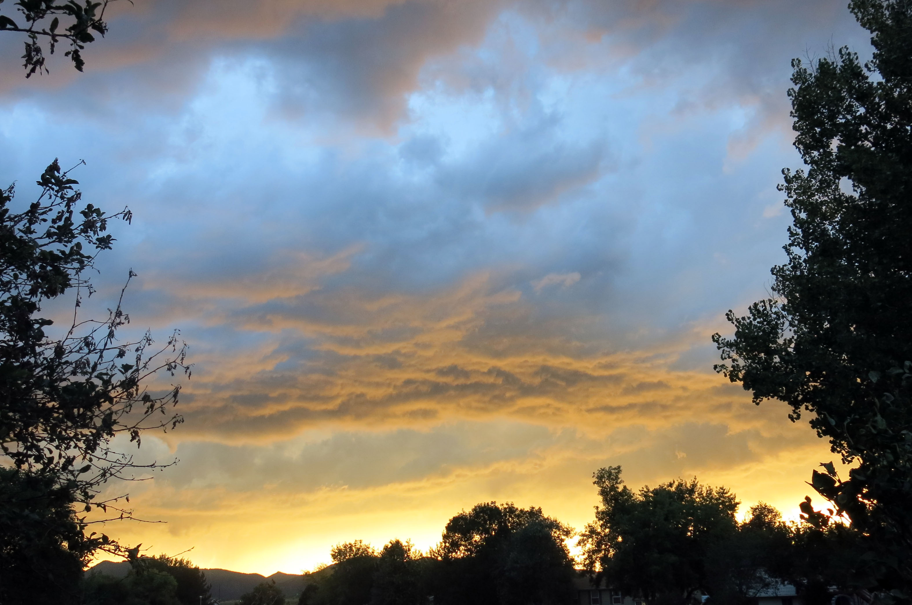 The guy I live with took some pictures in the weird light. We could hear thunder up in the mountains, so I sensibly stayed in my fort. They say you can get hit by lightning if you hear thunder, even though this was way up in the mountains, and echoed down the slopes and canyons. My fort was the best place to be.