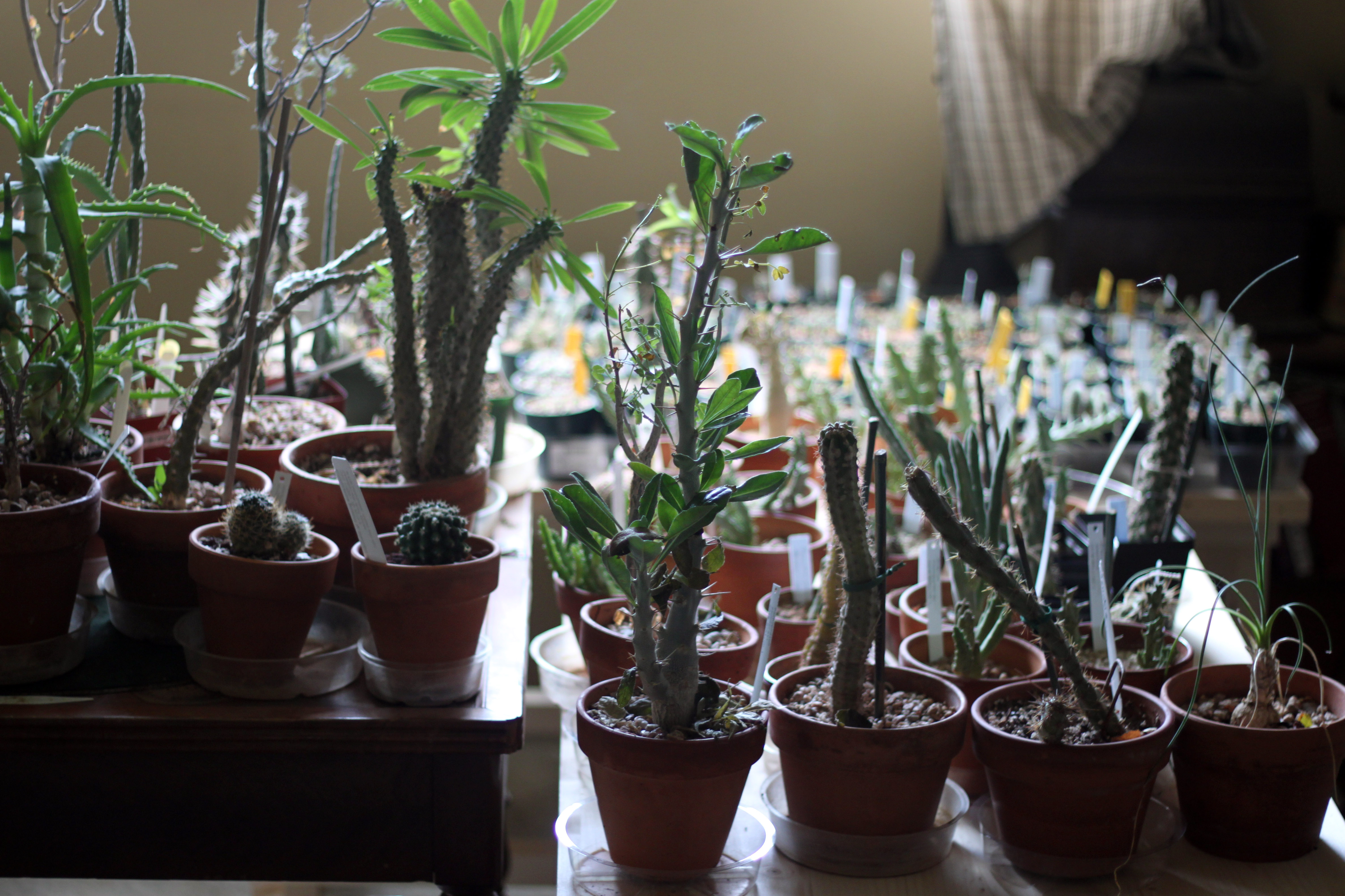 Oh, and since it’s that time of year again, the baby cactus got moved into the upstairs bedroom. The guy I live with thinks they might be able to stay outside all winter, but they would probably be devoured by rodents.
