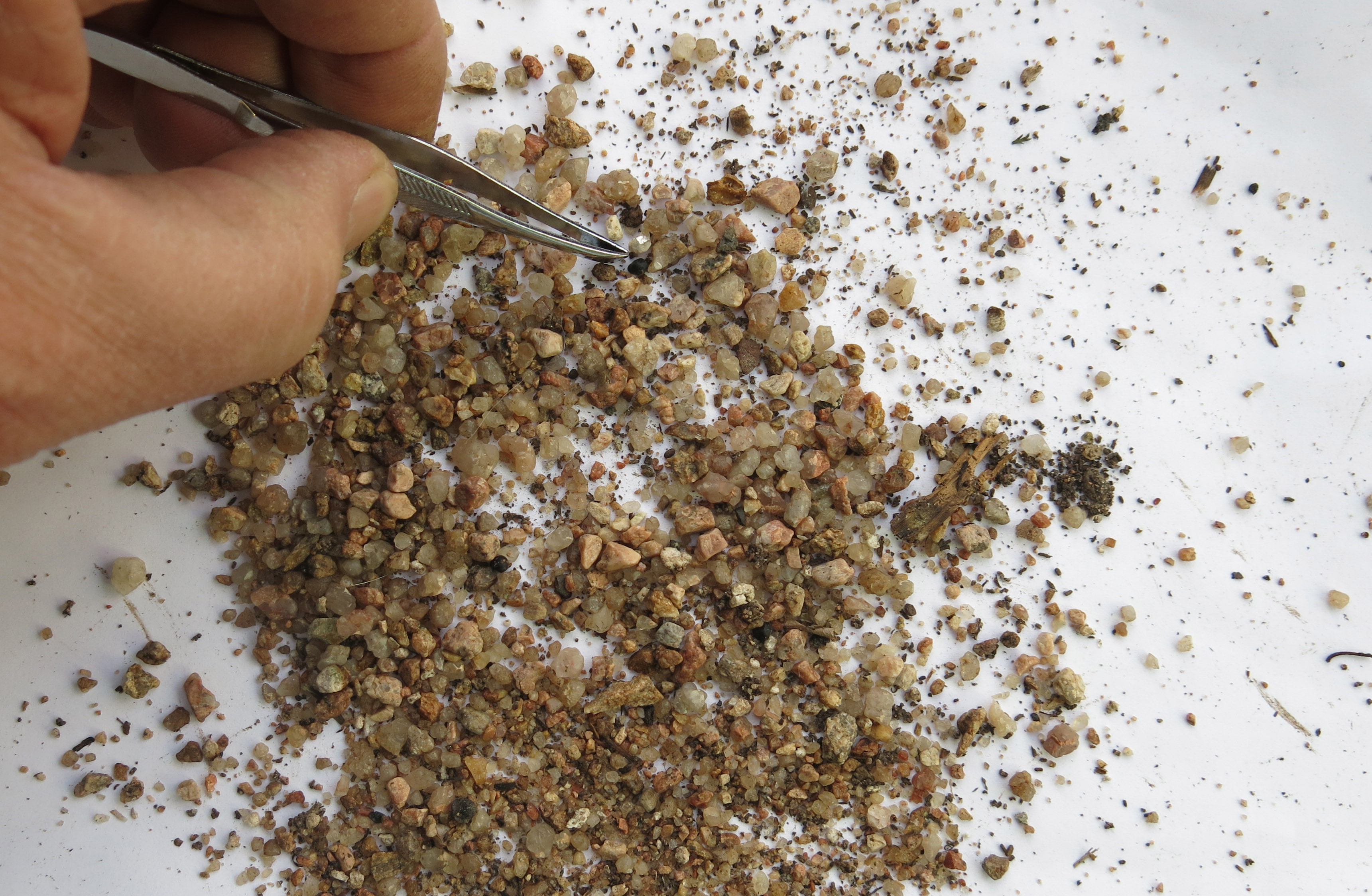 In this picture, seed of Sclerocactus havasupiensis, right smack in the center of the picture.