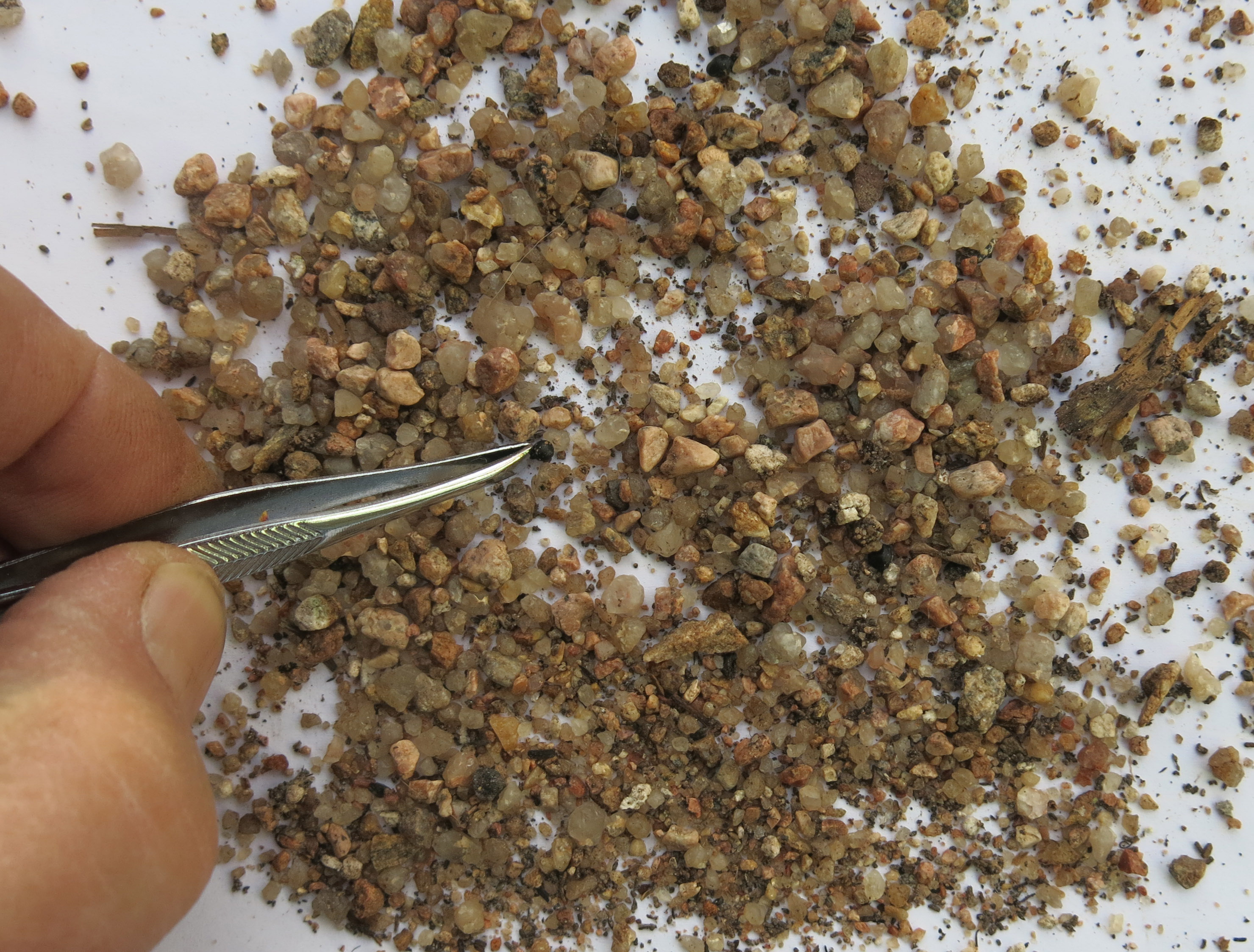 Here’s the seed, right at the end of the tweezers he went out and bought. The little black thing.