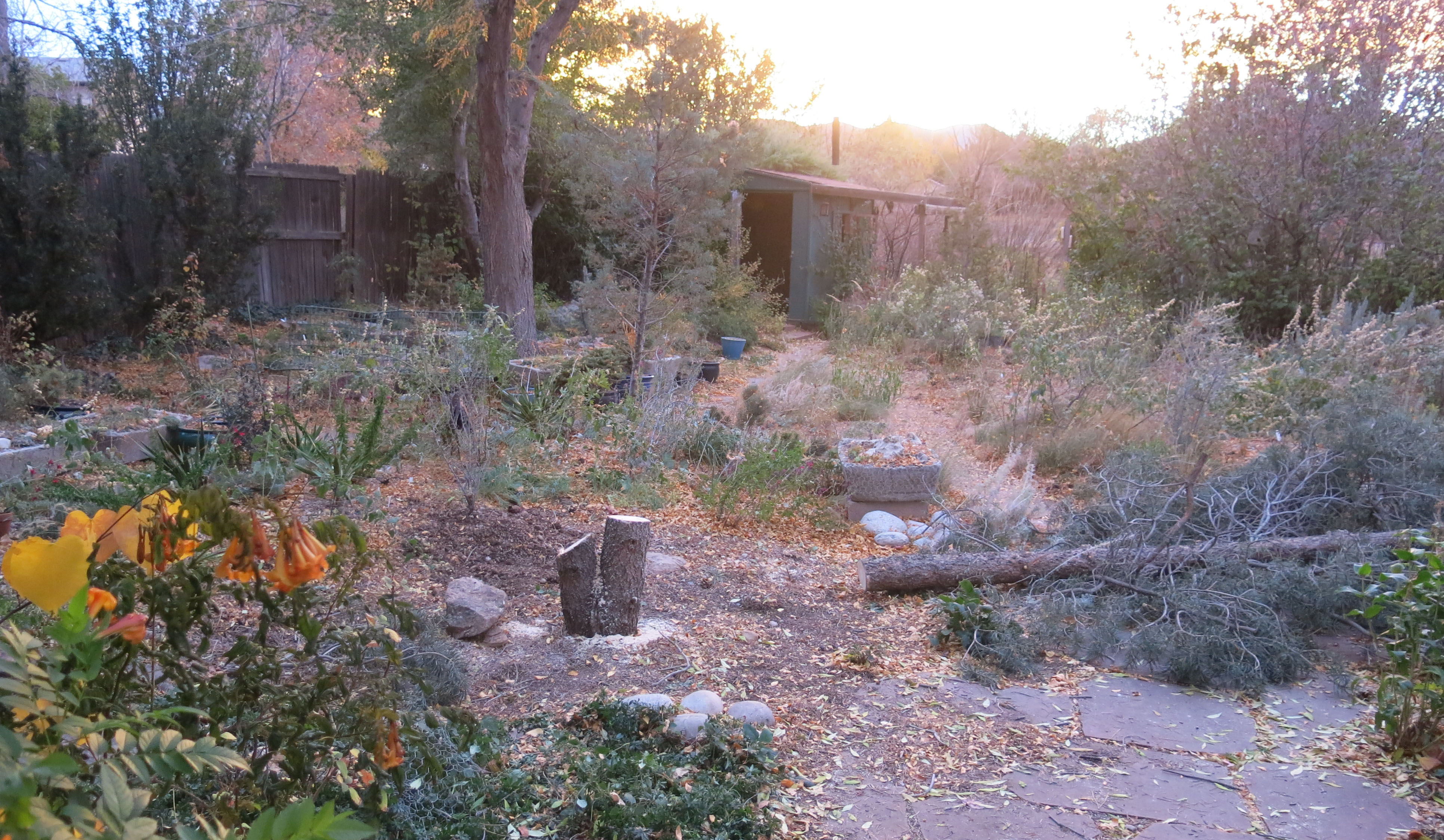 Thanks; I did chase away all the trick-or-treaters, which kind of upset the guy I live with, because then he was stuck with an awful lots of Kit Kats and four bags of peanut butter cups. “The horror, the horror!” Guess what happens when there are Kit Kats and peanut butter cups in the house? Even when they’re hidden? So he gave the Kit Kats to a neighbor. But not the peanut butter cups. The garden is opened up. A lot. One of the things that characterizes Denver’s climate is sun. (Except last summer.) It’s very sunny here in the winter. Like it can be 15 degrees F outside and the sun is so warm I can lie on the patio and think nothing of it. If the wind isn’t blowing. Incidentally, most of the sawing was done by hand. People might be surprised at how much work here is done by hand, rather than by machine. He got a Fanno saw a couple of years ago and he says it’s totally excellent.