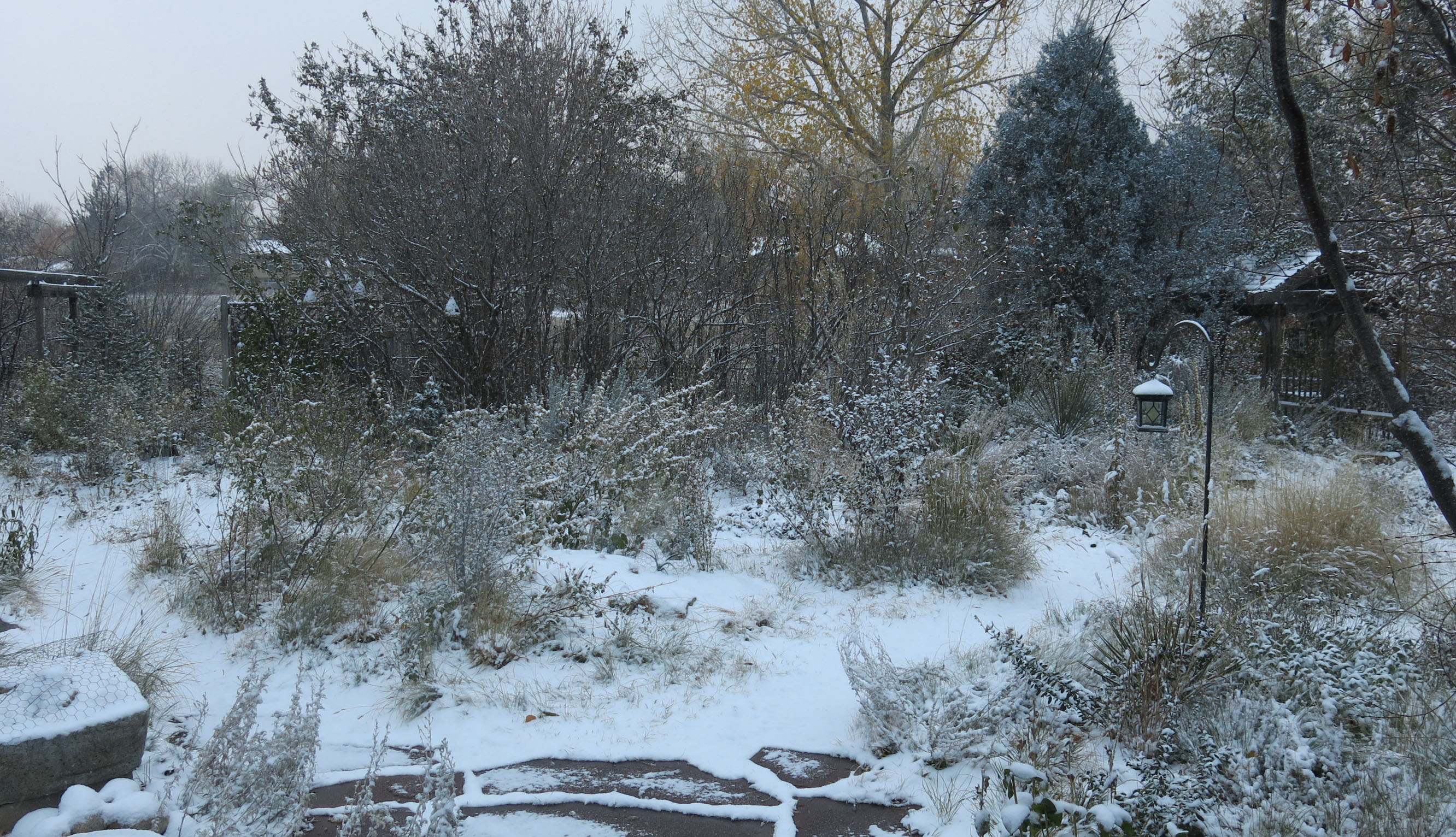 All true. I suppose there are no cats outside tonight. It’s a bad thing to let cats outside on nights like this. (Too cold, too early, though one time in November there was a 70 degree drop in temperature instead of the just 60 degree drop this time. Sometimes the plants don’t like it.)
