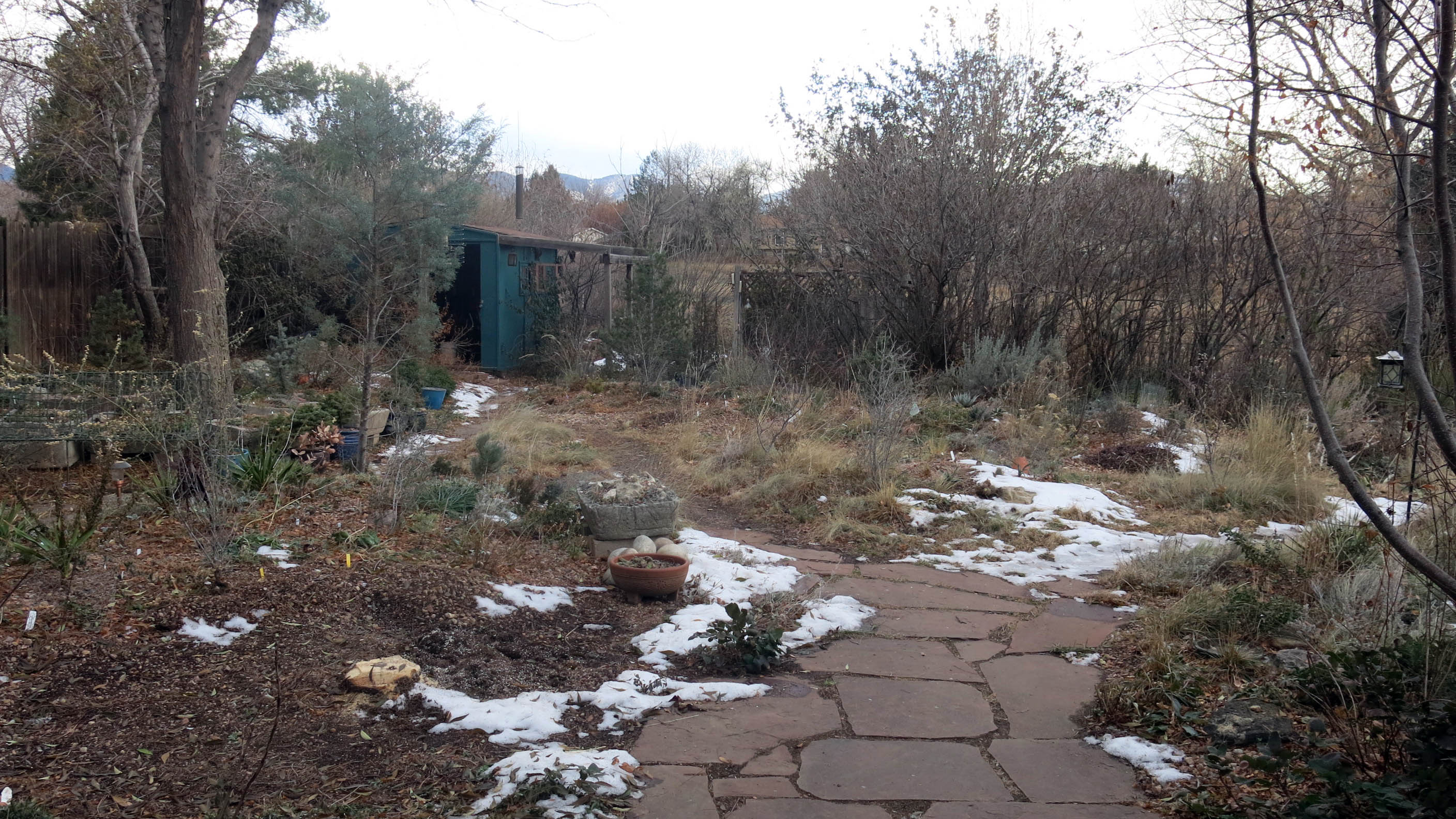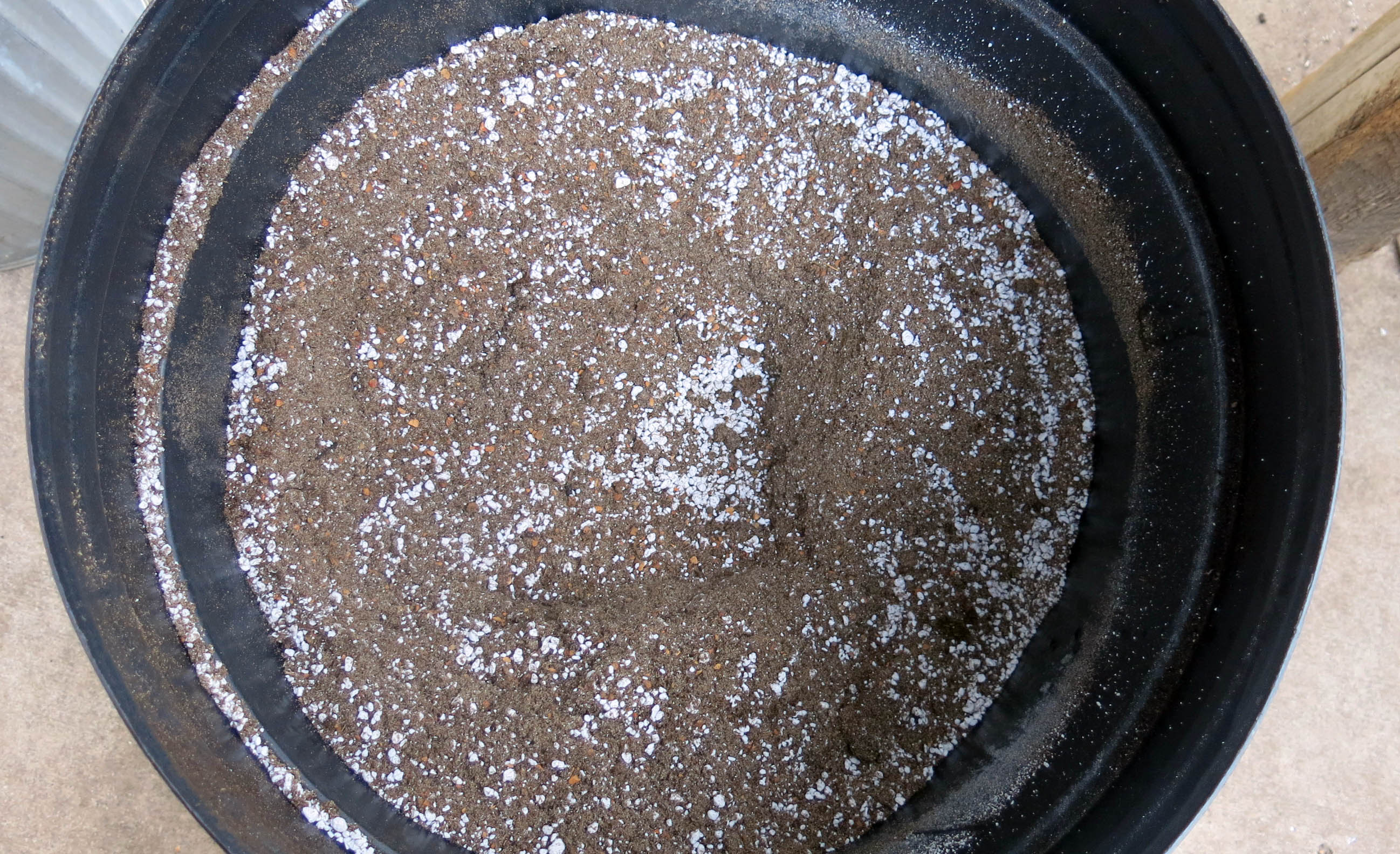 In other news, the guy I live with made his seed-sowing mix yesterday. It’s just peat moss, perlite, and sand, with some Turface (calcined clay) thrown in, too. At first he said he was going to screen the peat moss, which he does for making troughs, but he decided not to. The mix goes into a (clean) trash can and sits out on the patio, making it look like stuff is done around here. This is for seed sown in pots and left outdoors, which isn’t much of anything resembling work, if you ask me. Exactly how much work is it to leave something outdoors?