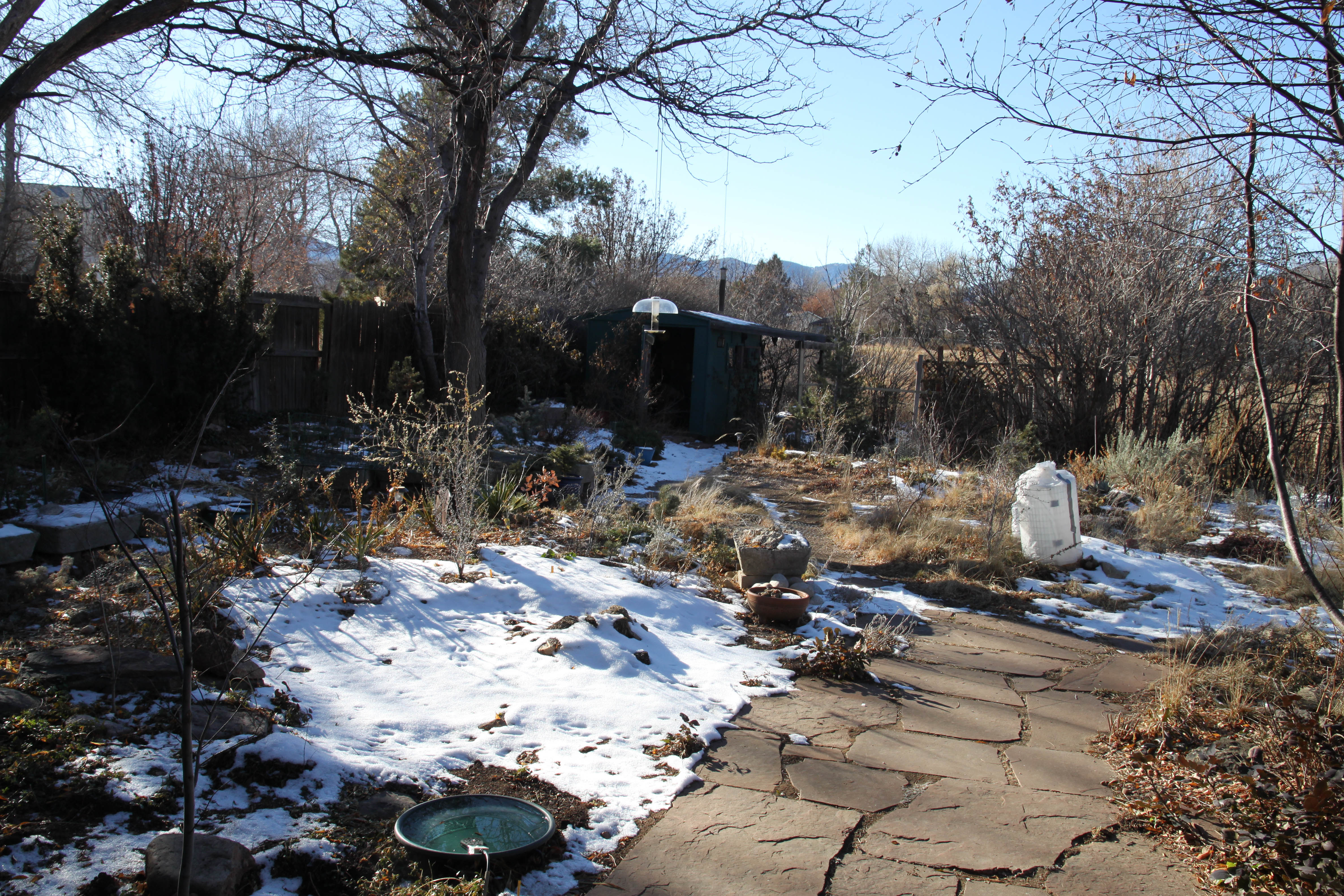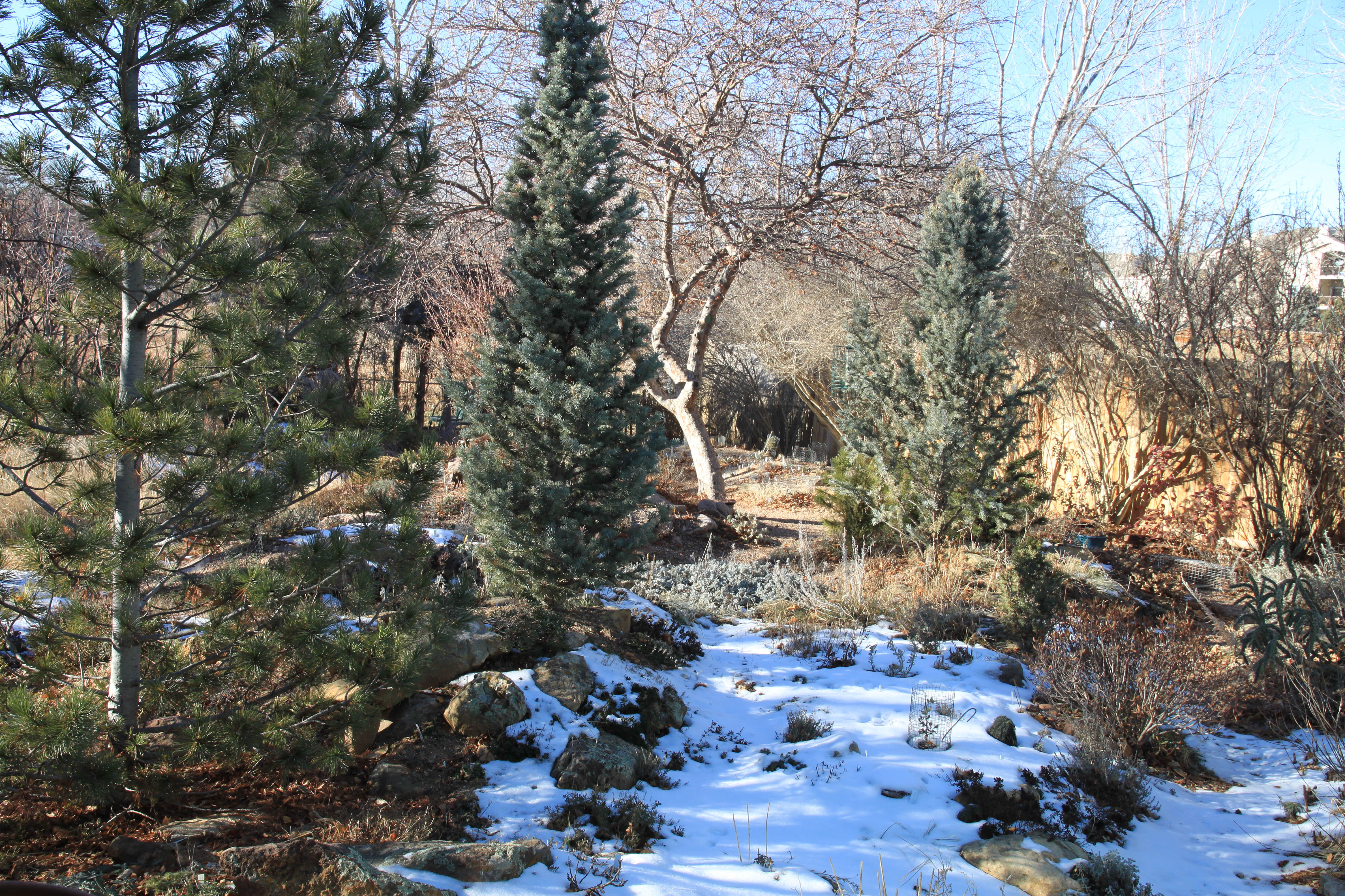 But I bring up this Japanese maple because here it is two days past the Winter solstice and the tree still has leaves on it. They are not at all beautiful at this point — they look like withered potato peels flapping in the wind — but I am flummoxed as to why they are still THERE in the first place. This is the biggest botanical mystery since that five foot tall stalk of sorghum we found growing between the bricks on our back patio. (It came from seeds dropping from bird feeder, we reckoned, because cardinals are sloppy eaters.)