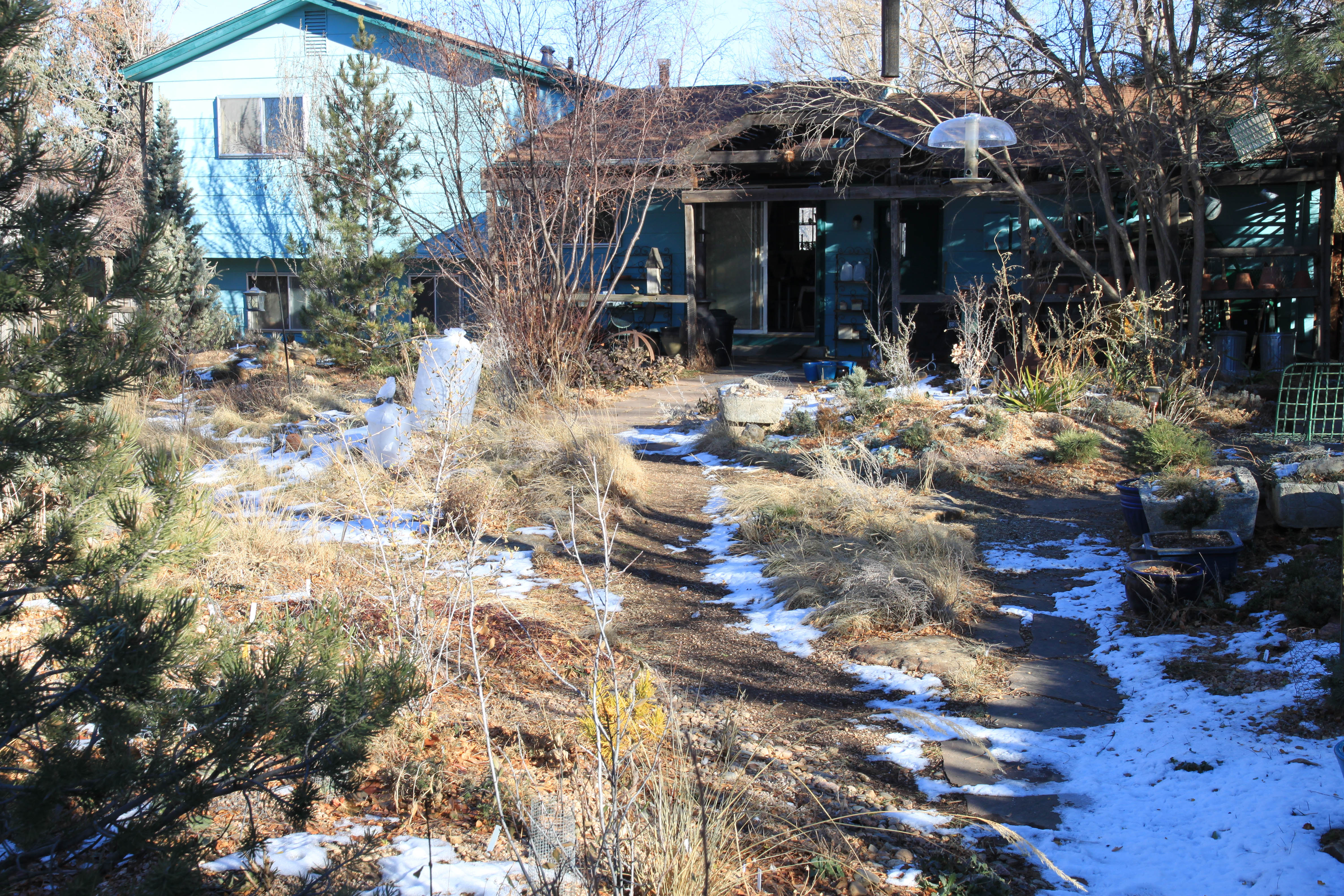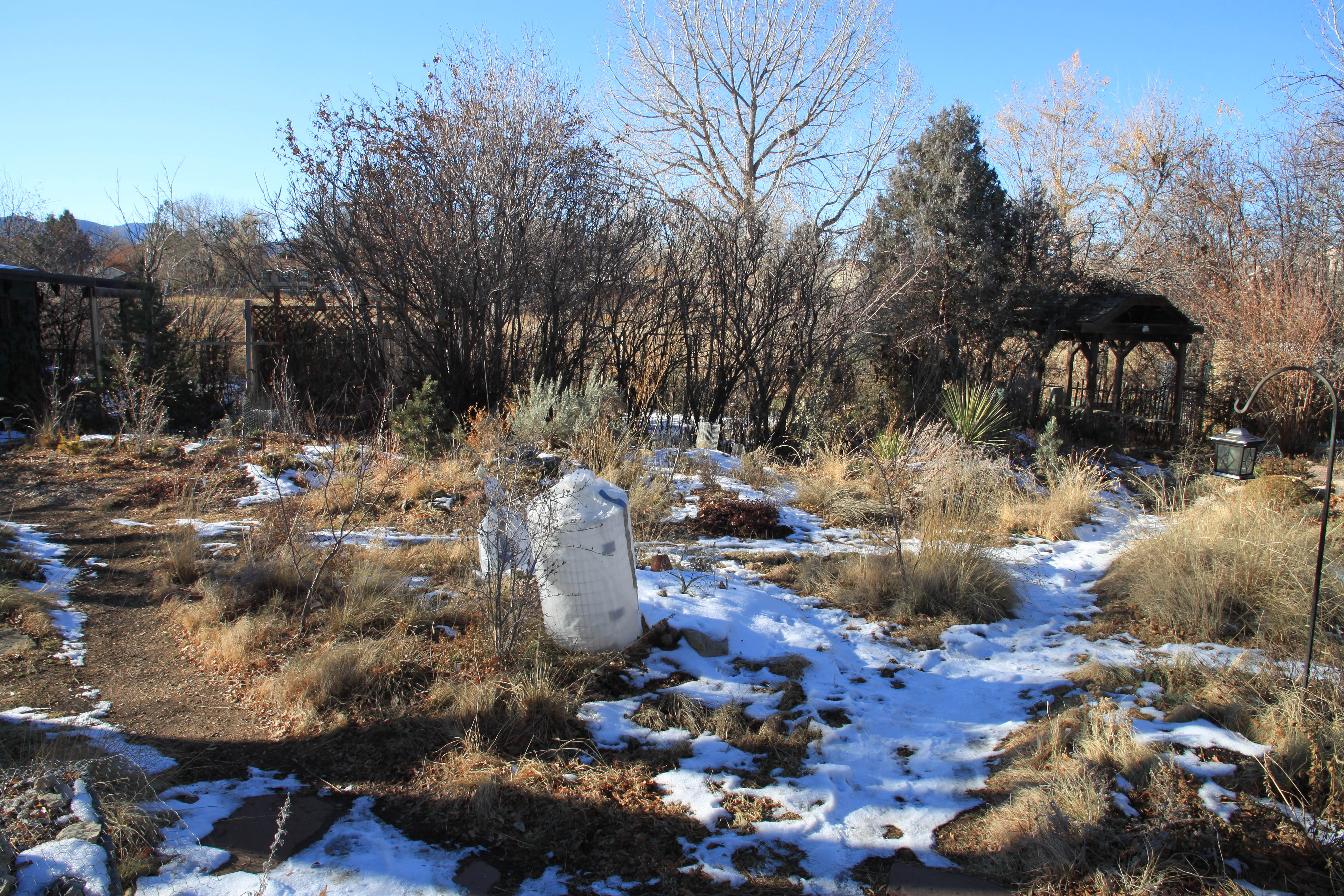 These paths were made by border collies, my grandpa Flurry and my Uncle Pooka, so they could race out to the “way back” and bark at things that needed barking at. There are agaves under the plastic there; they were planted out when they were too small.