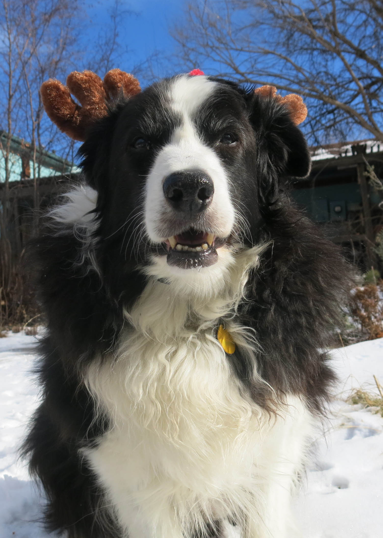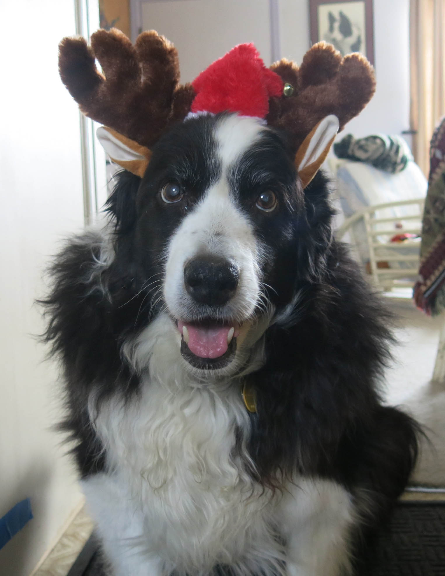 Oh, Chess, you utter darling, your smiles confirm the joy of being home to snoozle in place and create one’s own idea of fun. I wish you WELL in the coming year – that’s right, all through to year’s-end antler donning – and I lift my Christmas martini glass in toast to you and your guy. Cheers! and to you a good night.