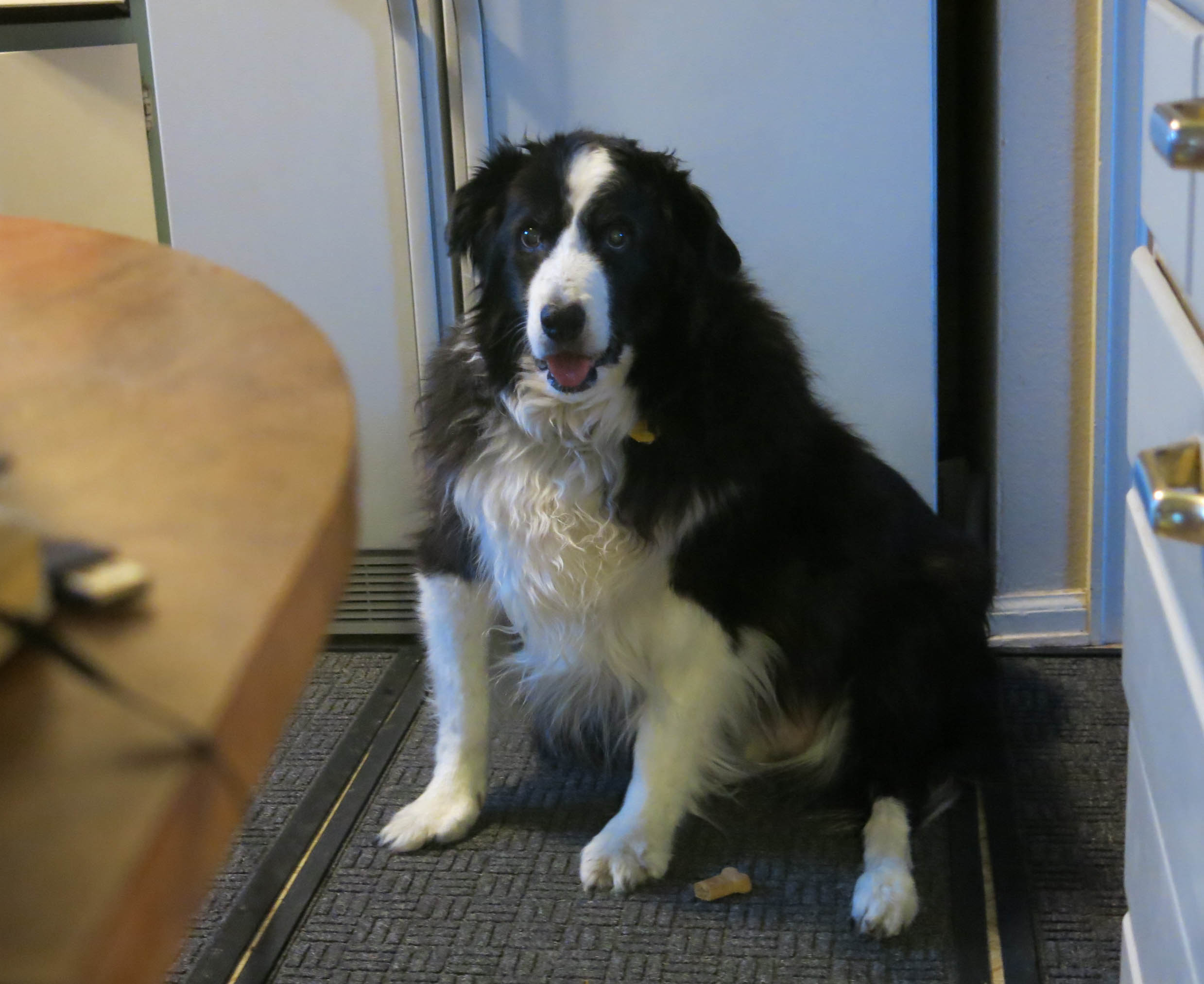 Oh, Chess, the third “you” photo! Quick, The Guy, give the beguiling Border Collie one more biscuit. Then go shovel the sidewalk until time to check the iris again.